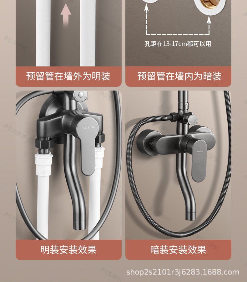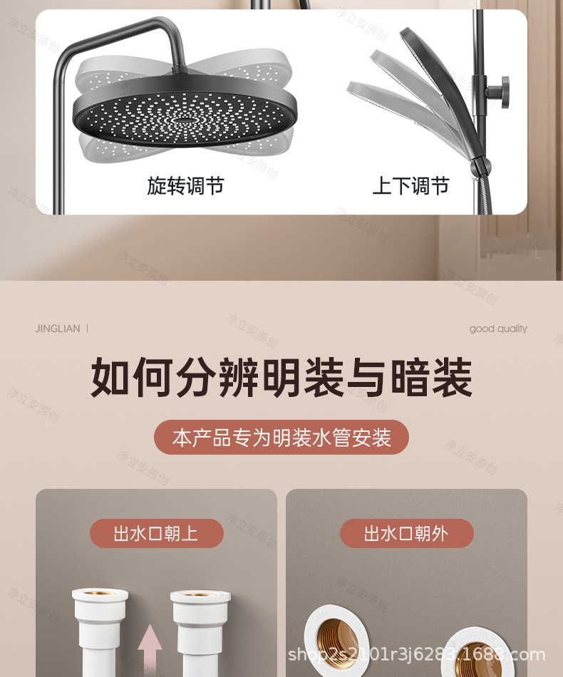 표면 장착형 샤워 헤드 세트, 전체 구리 가압 스프레이 헤드, 욕실 노출형 파이프, 일체형 샤워기 세트스토어 가기
