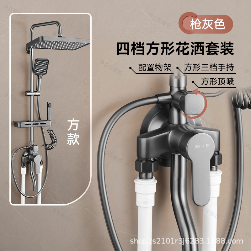 • 건 애쉬 [노출형 4구수] 사각 샤워 세트 - 두꺼운 전체 구리(범용 설치)