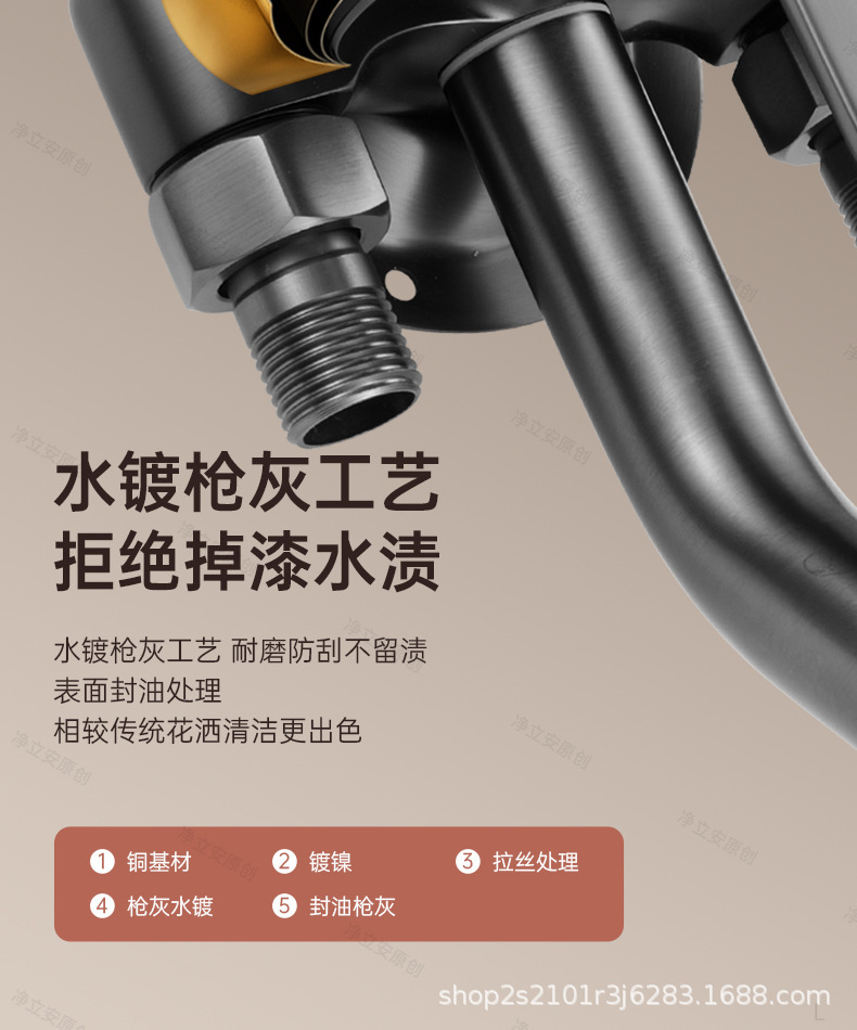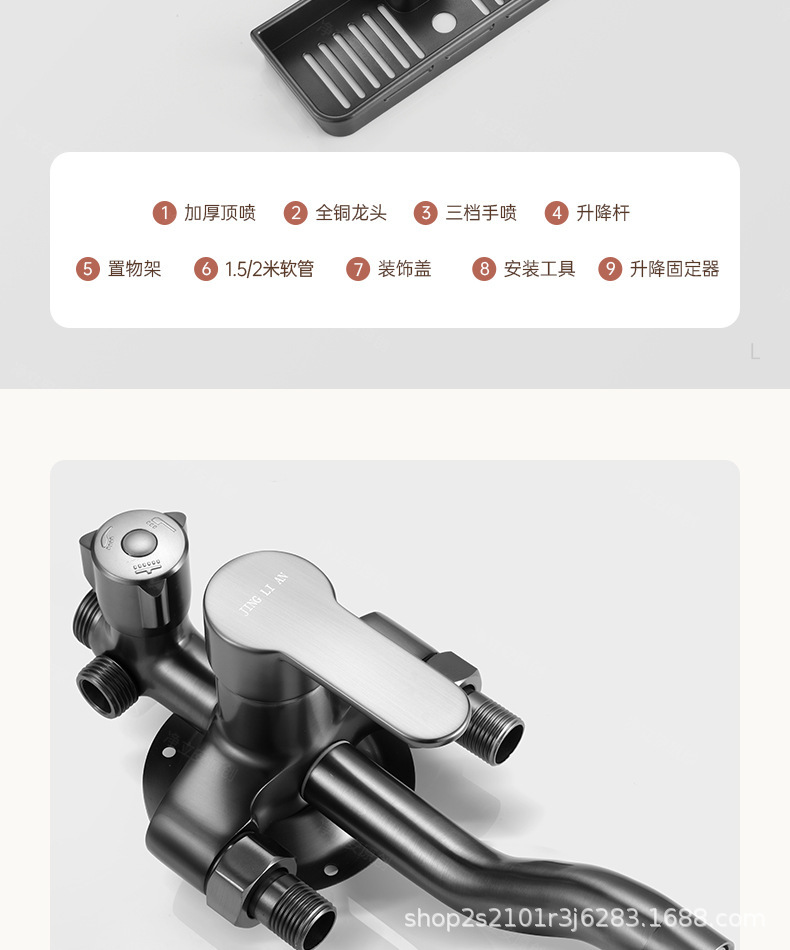 • 건그레이 [노출형 3구수] 사각샤워세트 - 두꺼운 전체동(유니버설설치)