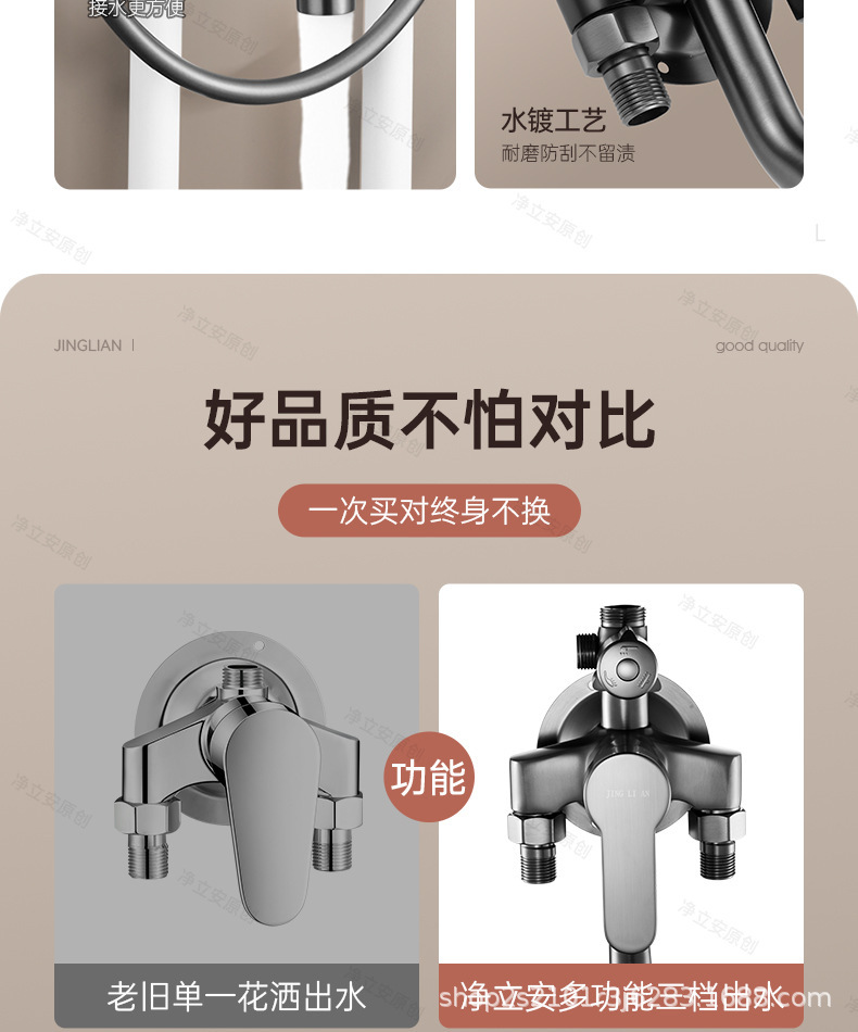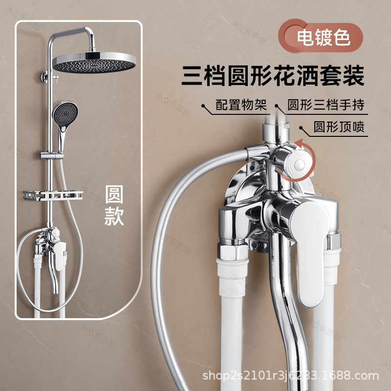 • 브라이트 실버 [노출형 3구수] 원형 샤워 세트 - 두꺼운 전체 구리(범용 설치)