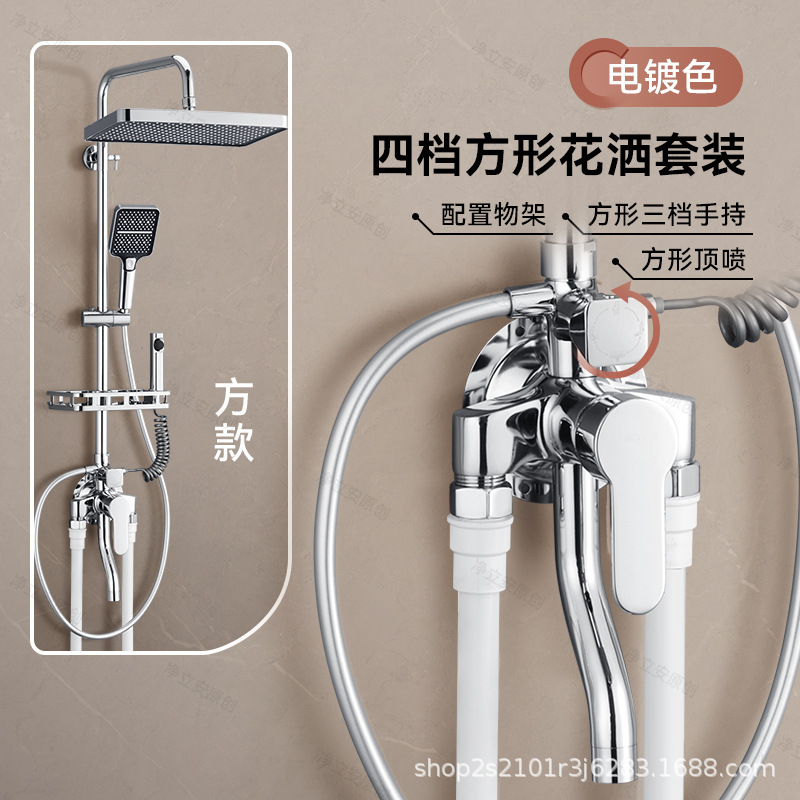 • 브라이트 실버 [노출형 4구] 사각 샤워 세트 - 두꺼운 전체 구리(범용 설치)