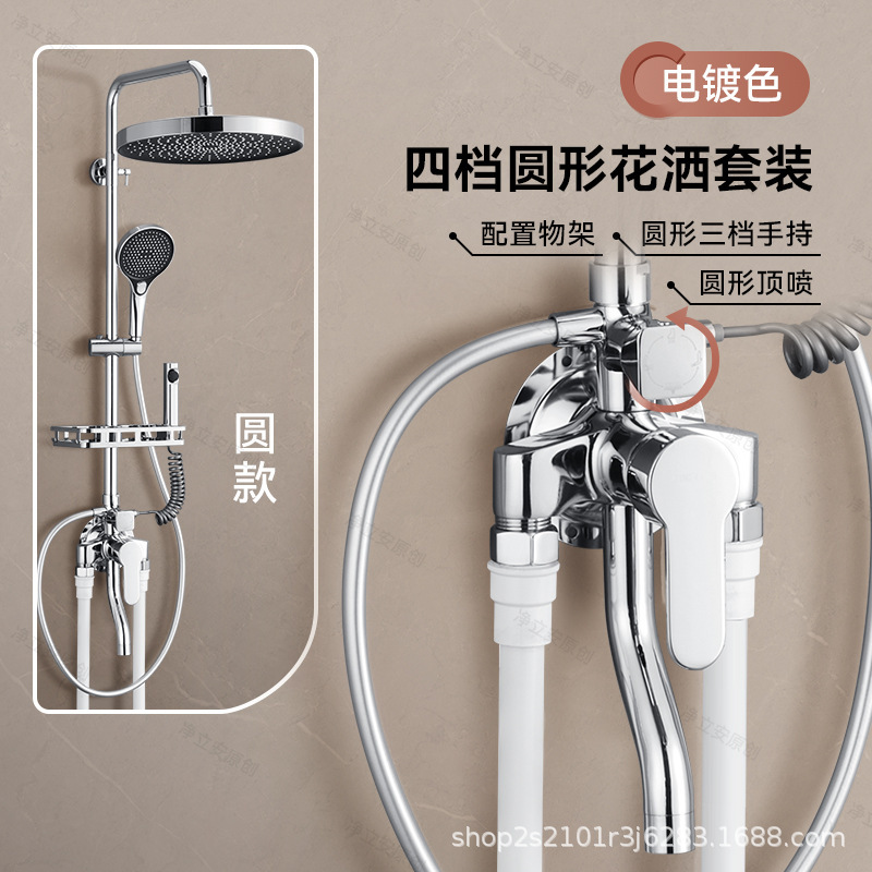 • 브라이트 실버 [노출형 4구수] 원형 샤워 세트 - 두꺼운 전체 구리(범용 설치)