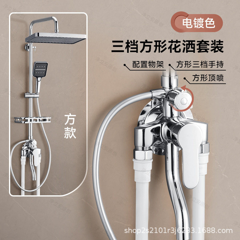 • 브라이트 실버 [노출형 3구] 사각 샤워 세트 - 두꺼운 전체 구리(범용 설치)