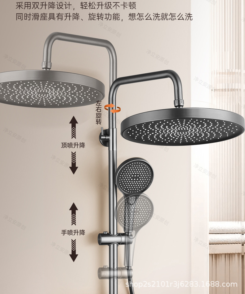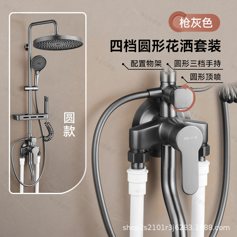 • 건 애쉬 [노출형 4구수] 원형 샤워 세트 - 두꺼운 전체 구리(범용 설치)