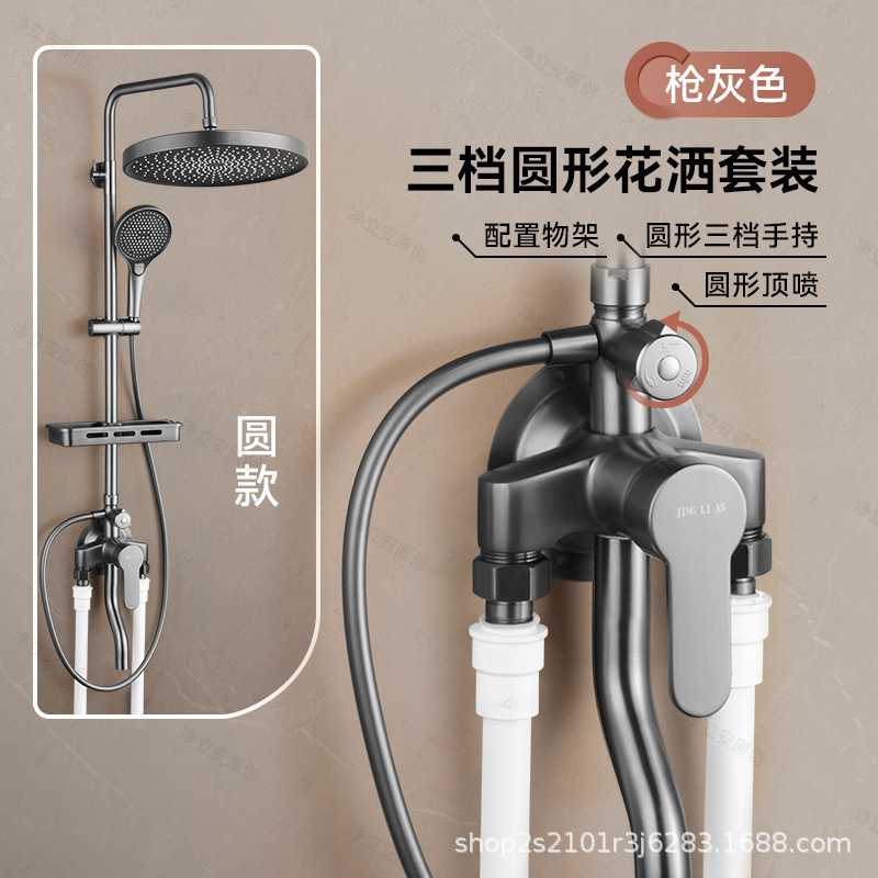 • 건그레이 [노출형 3구수] 원형샤워세트 - 두꺼운전체동(유니버설설치)