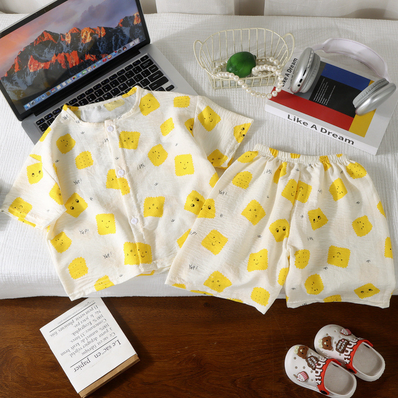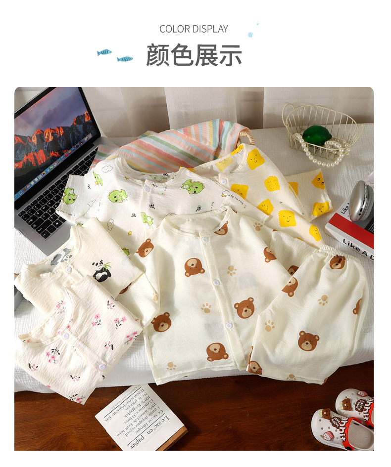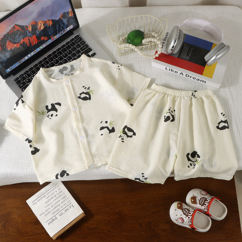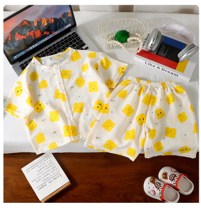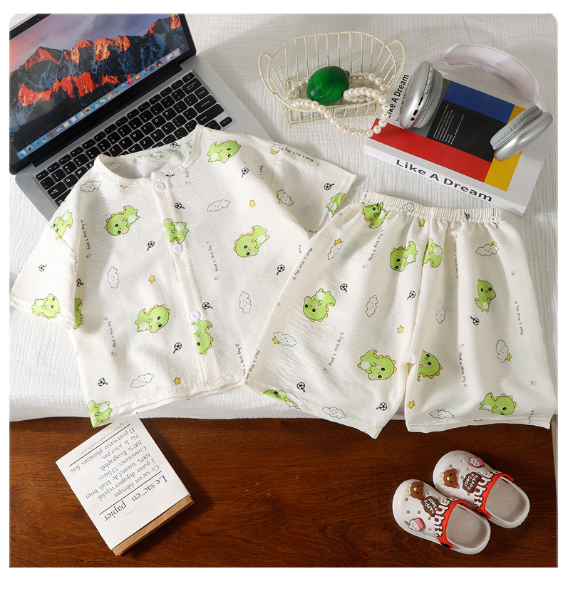 어린이 반팔 반바지 여름 소년과 소녀 카디건 정장 얇은 아기 만화 투피스 세트 가정 의류 여름 옷스토어 가기
