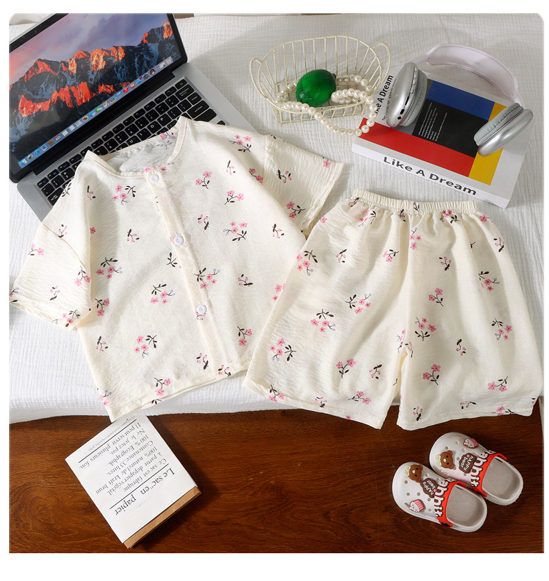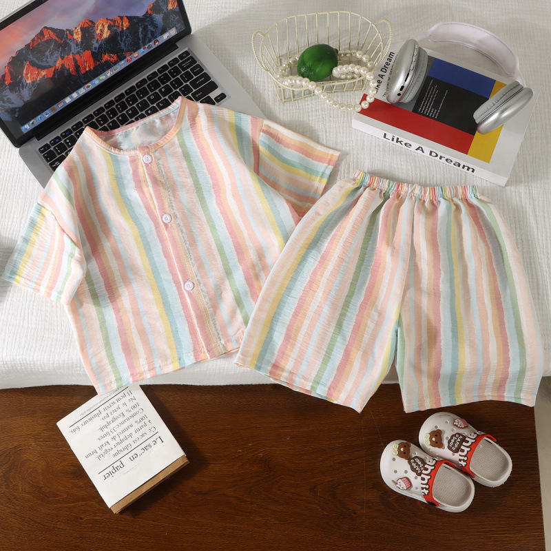 어린이 반팔 반바지 여름 소년과 소녀 카디건 정장 얇은 아기 만화 투피스 세트 가정 의류 여름 옷