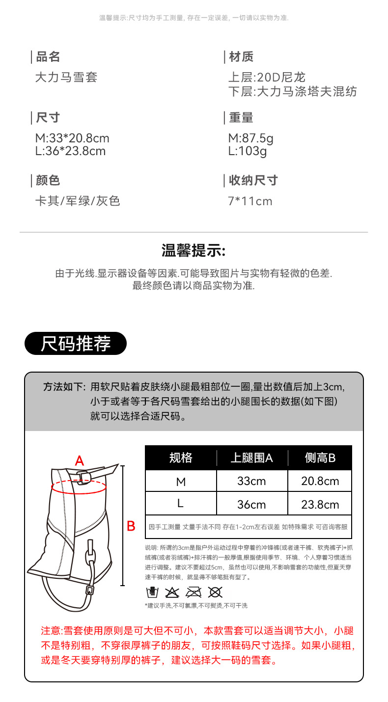 하이크맨 하이킹 스노우 커버 야외 캠핑 경량 사막 스키 모래 방지 및 눈 방지 발 커버 레그 커버스토어 가기