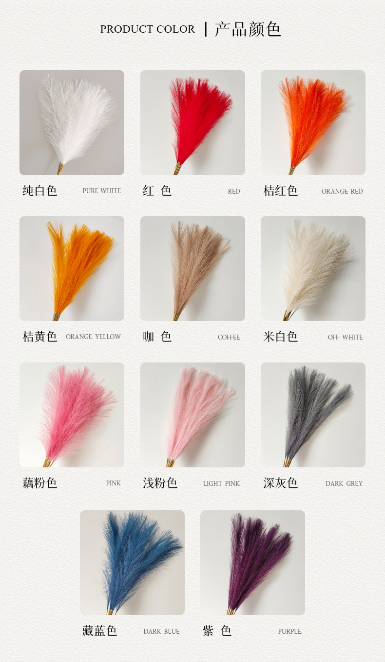 跨境热销55cm仿真单叉芦苇毛婚庆家居装饰芦苇毛批发多种颜色可选