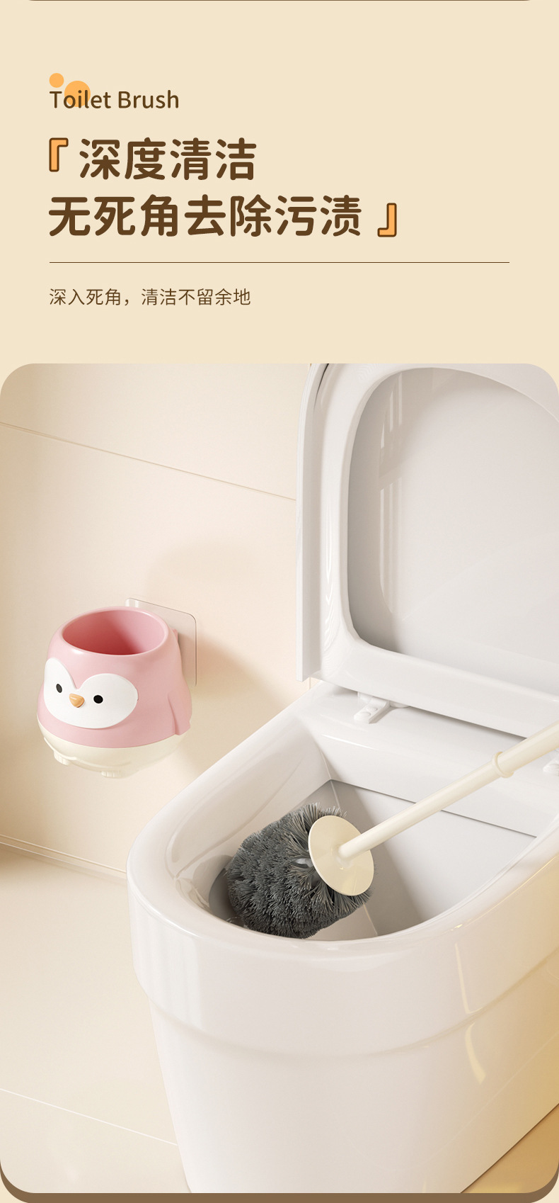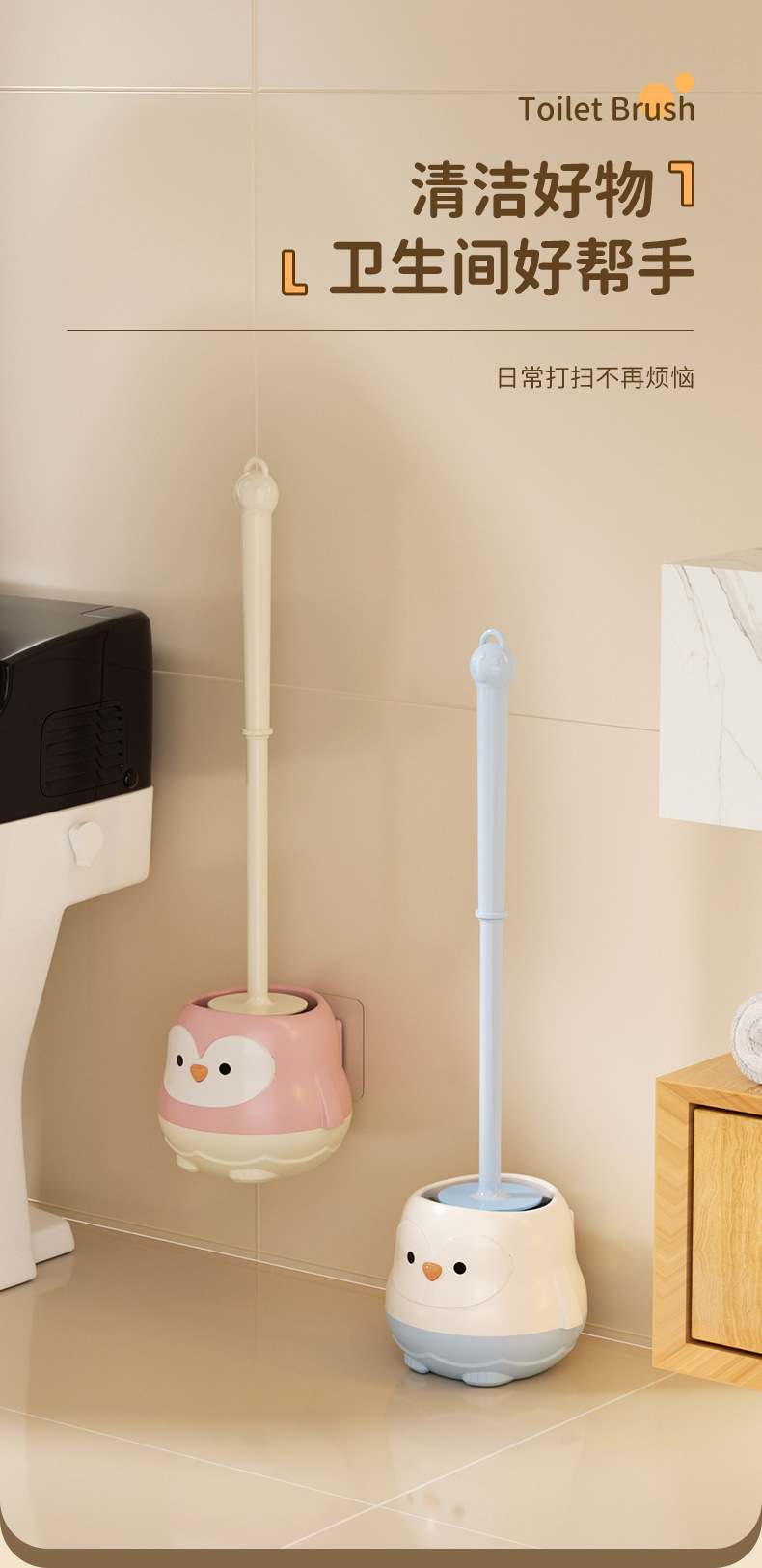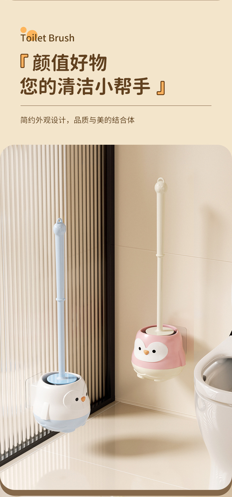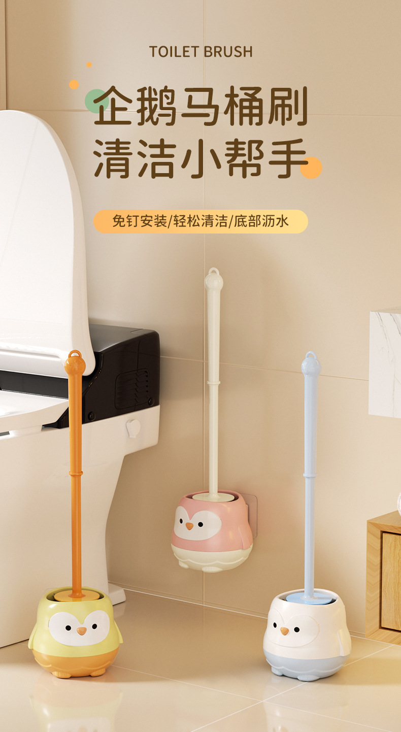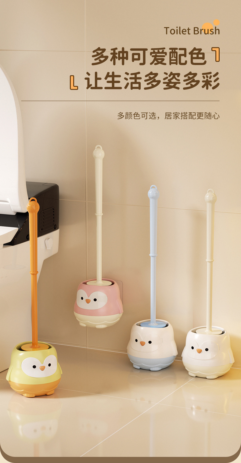 귀여운 펭귄 변기 브러시, 가정용 사각지대 없는 브러시, 욕실 화장실 만화 긴 손잡이 변기 브러시 청소 브러시스토어 가기
