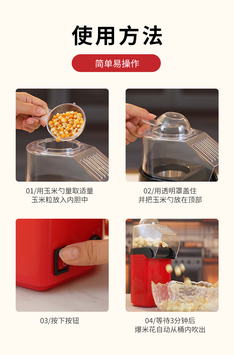 완전 자동 뜨거운 공기 소형 어린이 가정용 전기 원 클릭 공 모양 미니 나비 팝콘 가족 기계 만들기