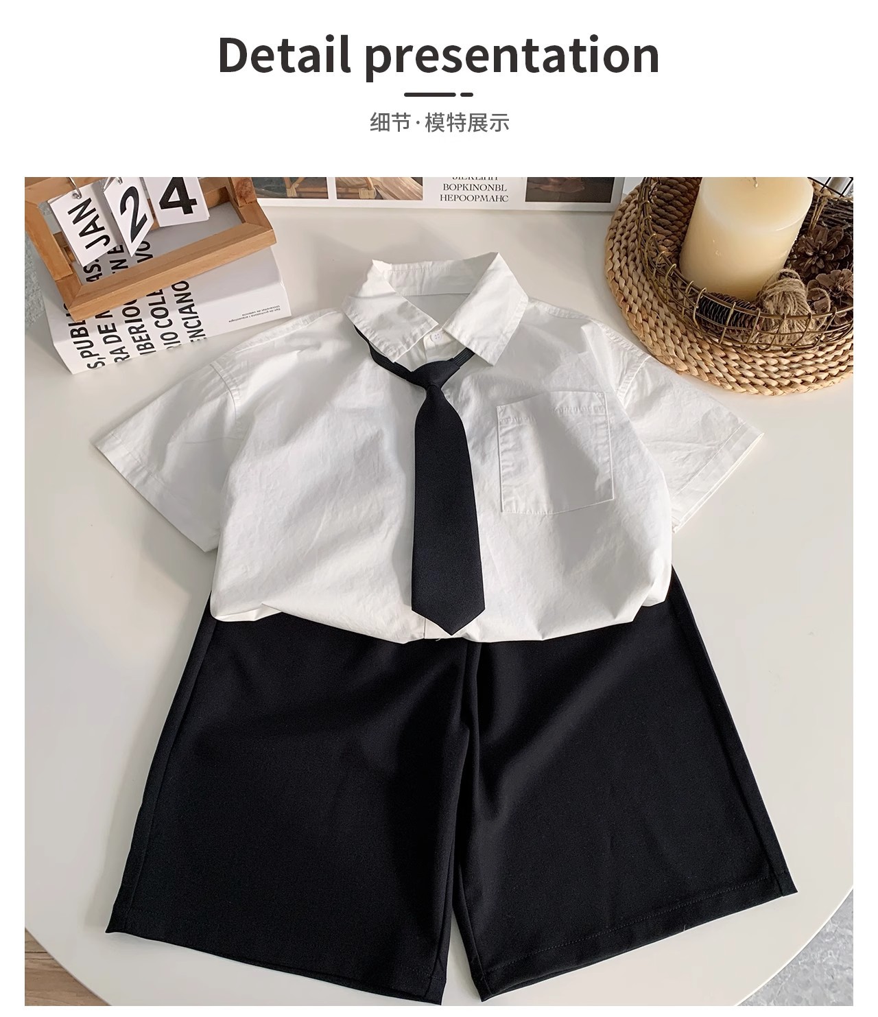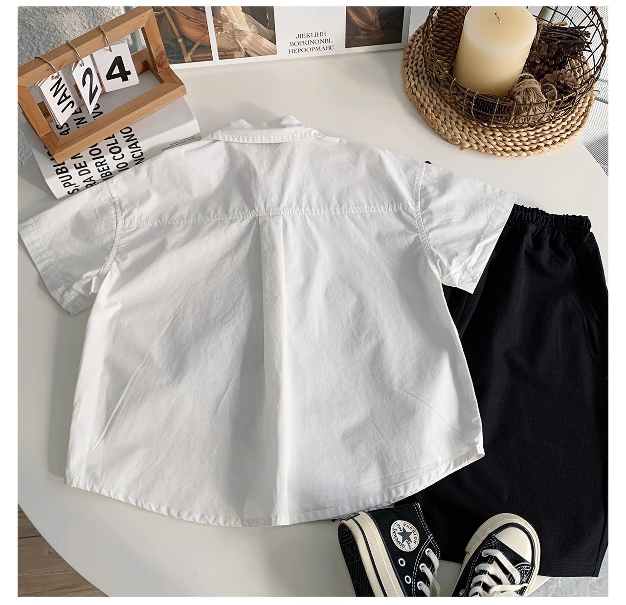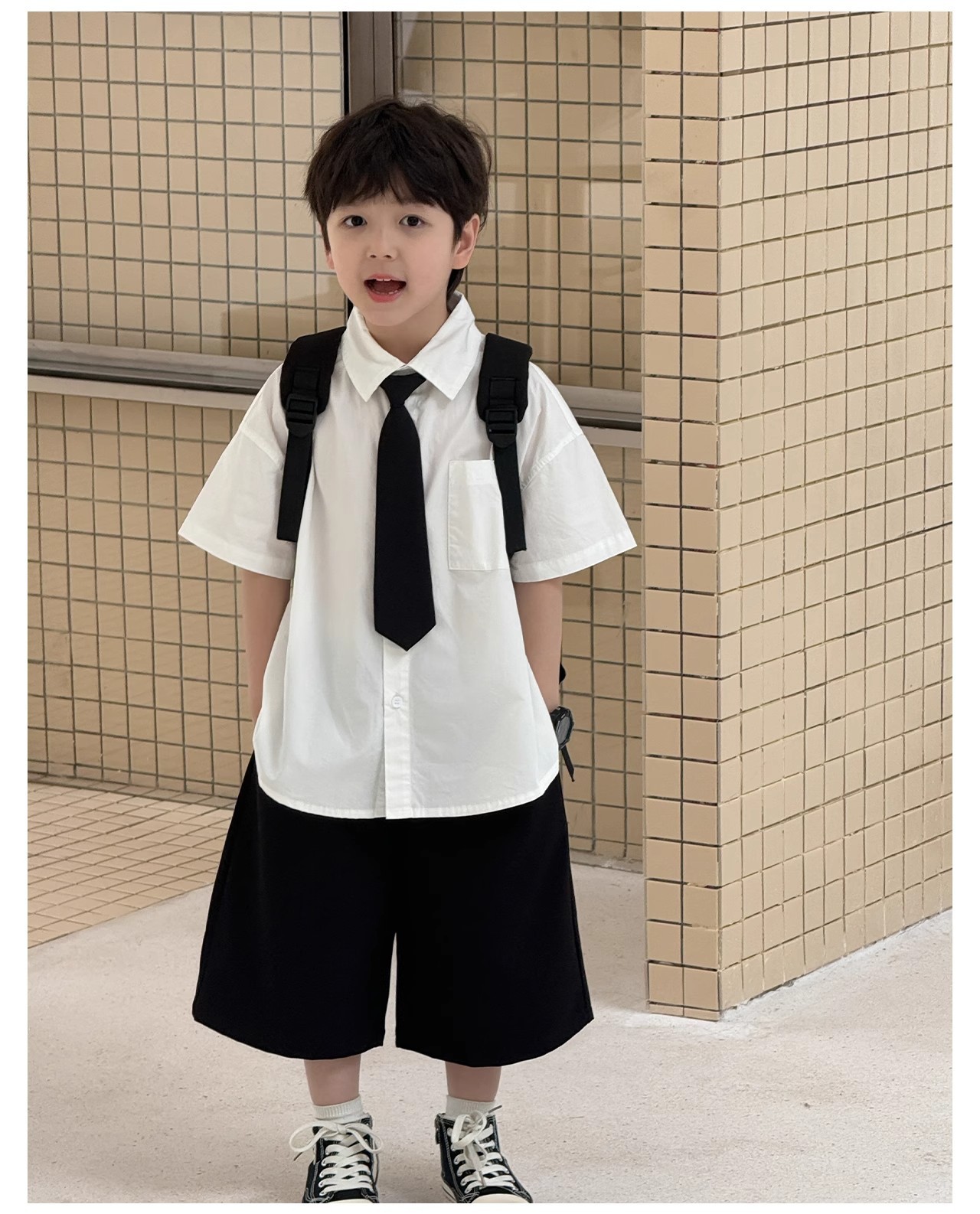 소년 흰색 반팔 셔츠 정장 여름 2025 새로운 어린이 여름 대학 스타일 아기 소년 여름 얇은 스타일스토어 가기