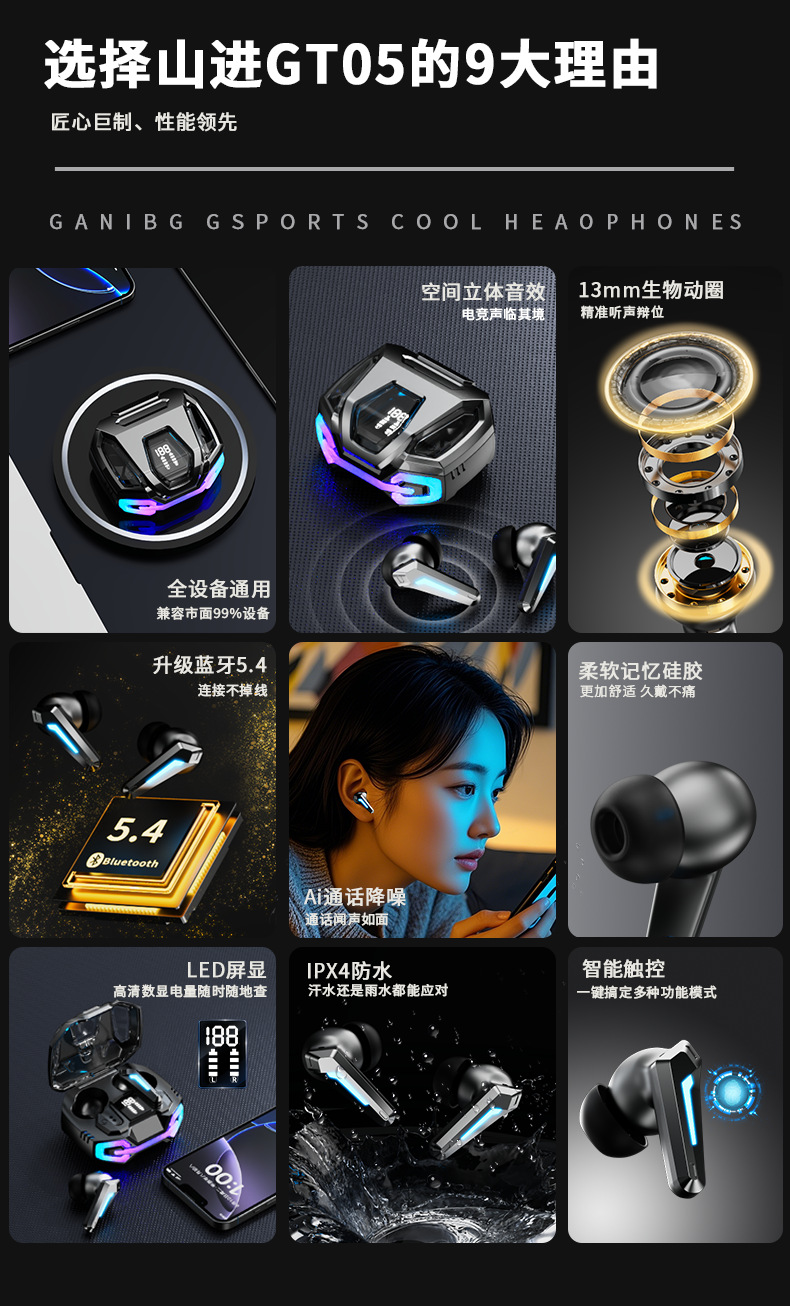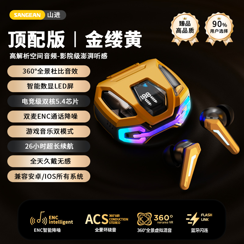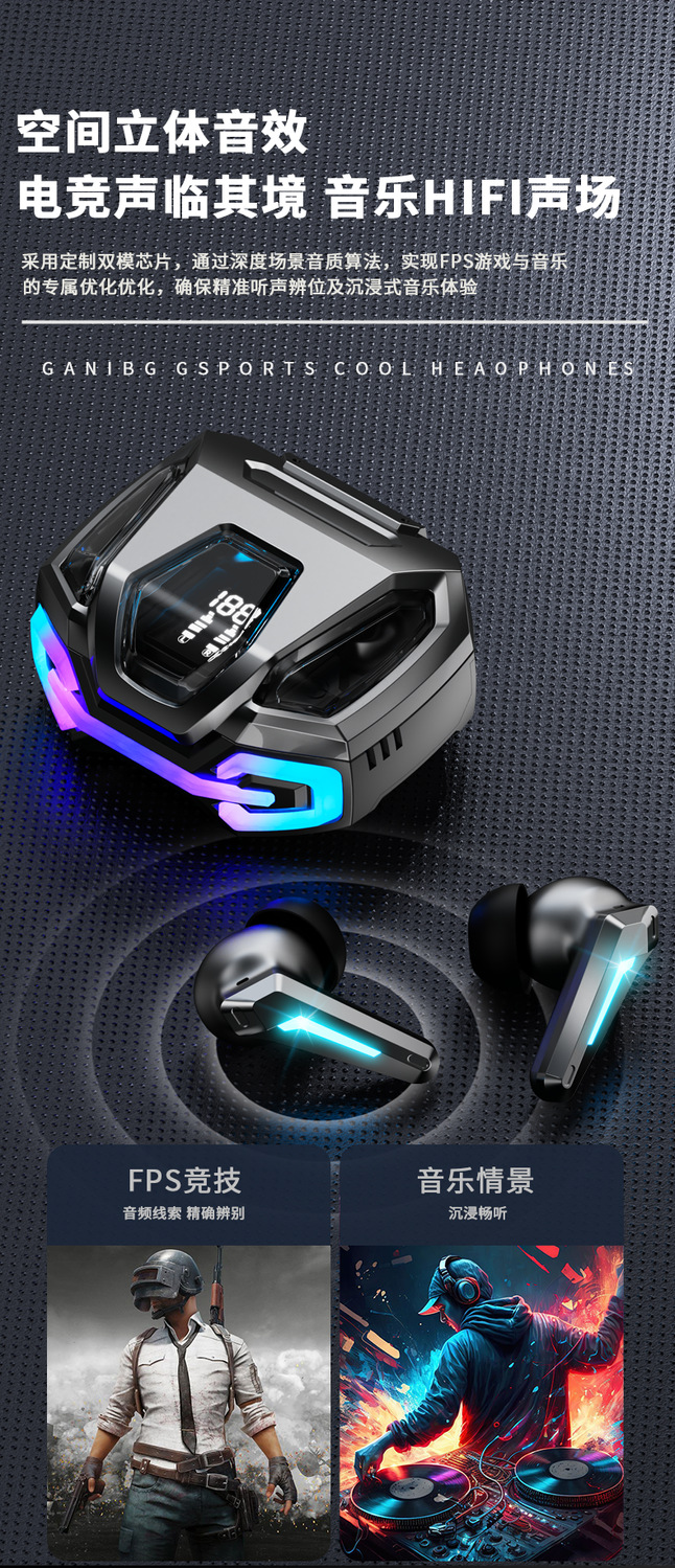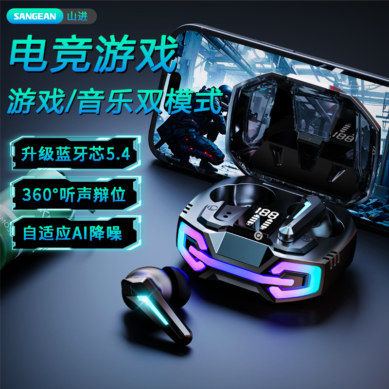 Shanjin GT05 게임 및 e-스포츠 전용 블루투스 헤드셋 이어폰 스포츠 음악 남성과 여성을 위한 매우 긴 배터리 수명