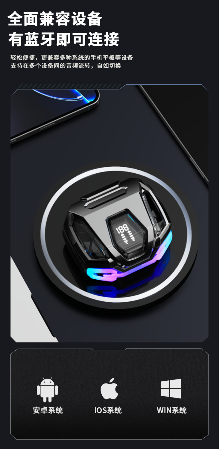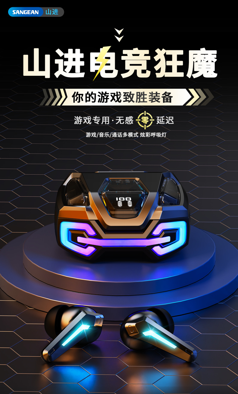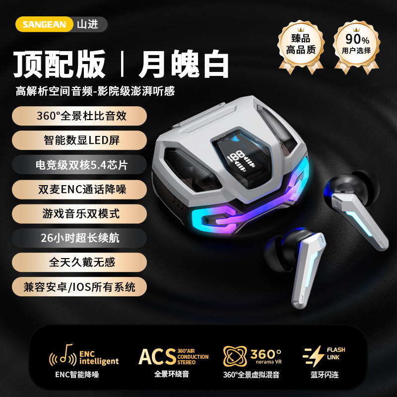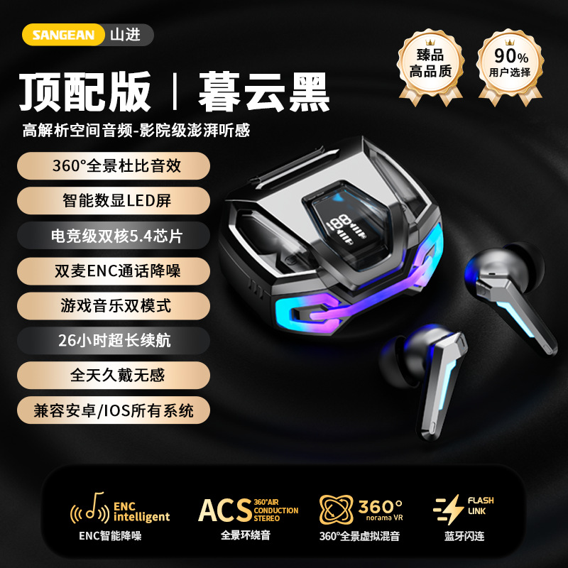 Shanjin GT05 게임 및 e-스포츠 전용 블루투스 헤드셋 이어폰 스포츠 음악 남성과 여성을 위한 매우 긴 배터리 수명