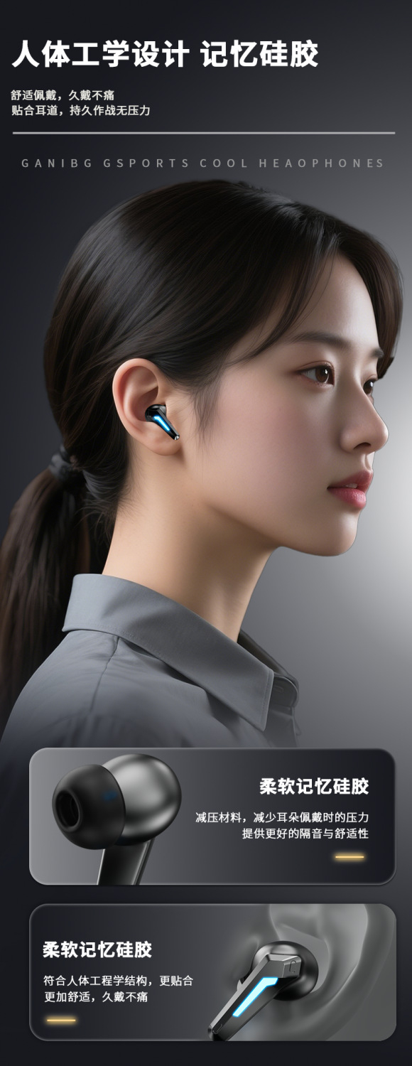 Shanjin GT05 게임 및 e-스포츠 전용 블루투스 헤드셋 이어폰 스포츠 음악 남성과 여성을 위한 매우 긴 배터리 수명스토어 가기