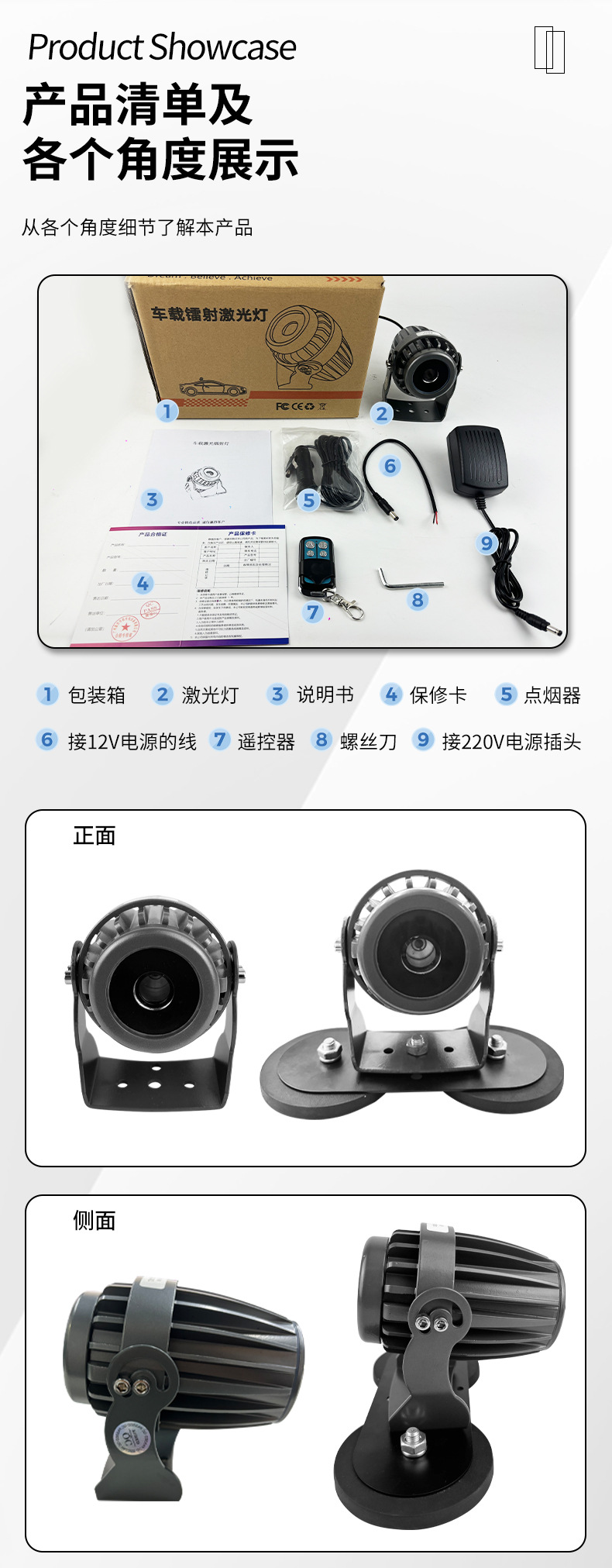 고출력 레이저 조명, 차량 탑재 레이저 조명, 피로 방지 경고등, 후방 충돌 방지 경고등, 깜박이는 강한 조명 스포트라이트