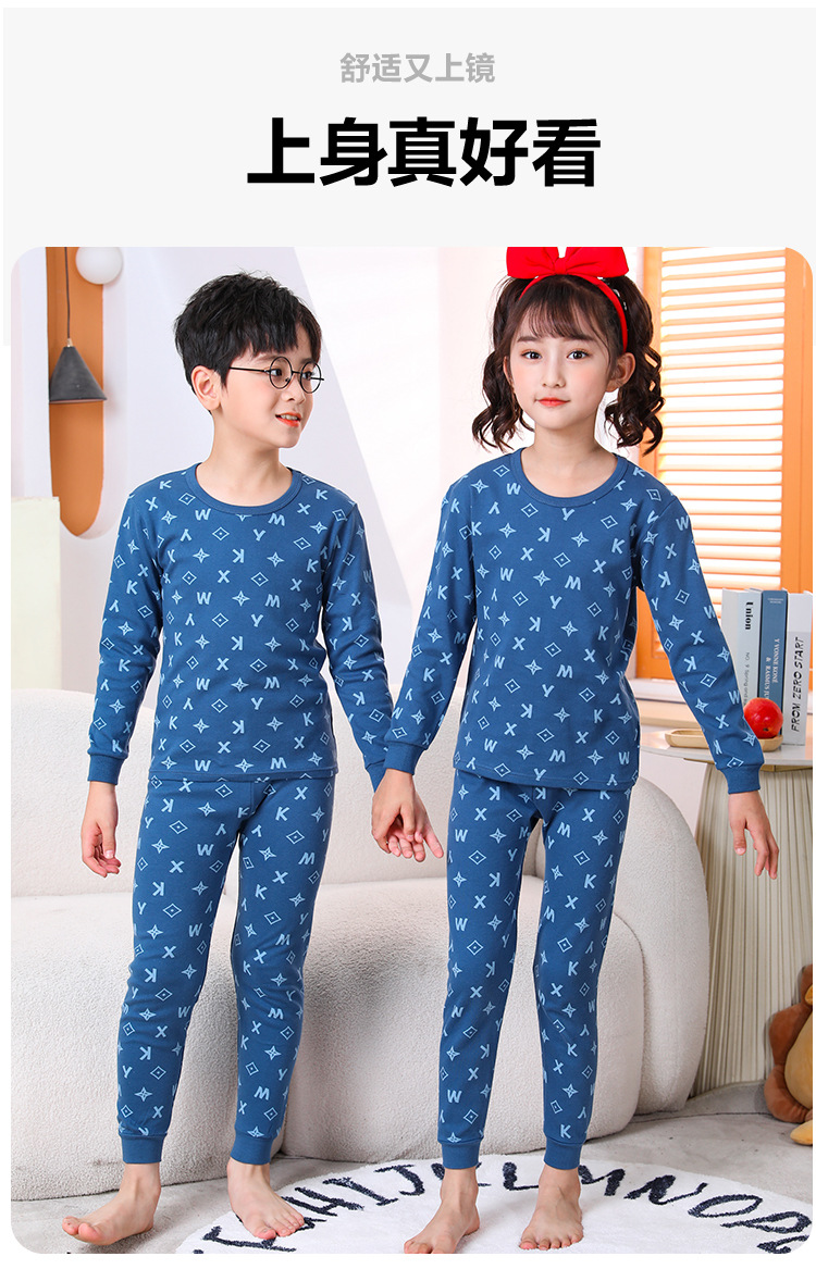 • 파란색 레터링 아동용 면 내의 세트 (KXYW)