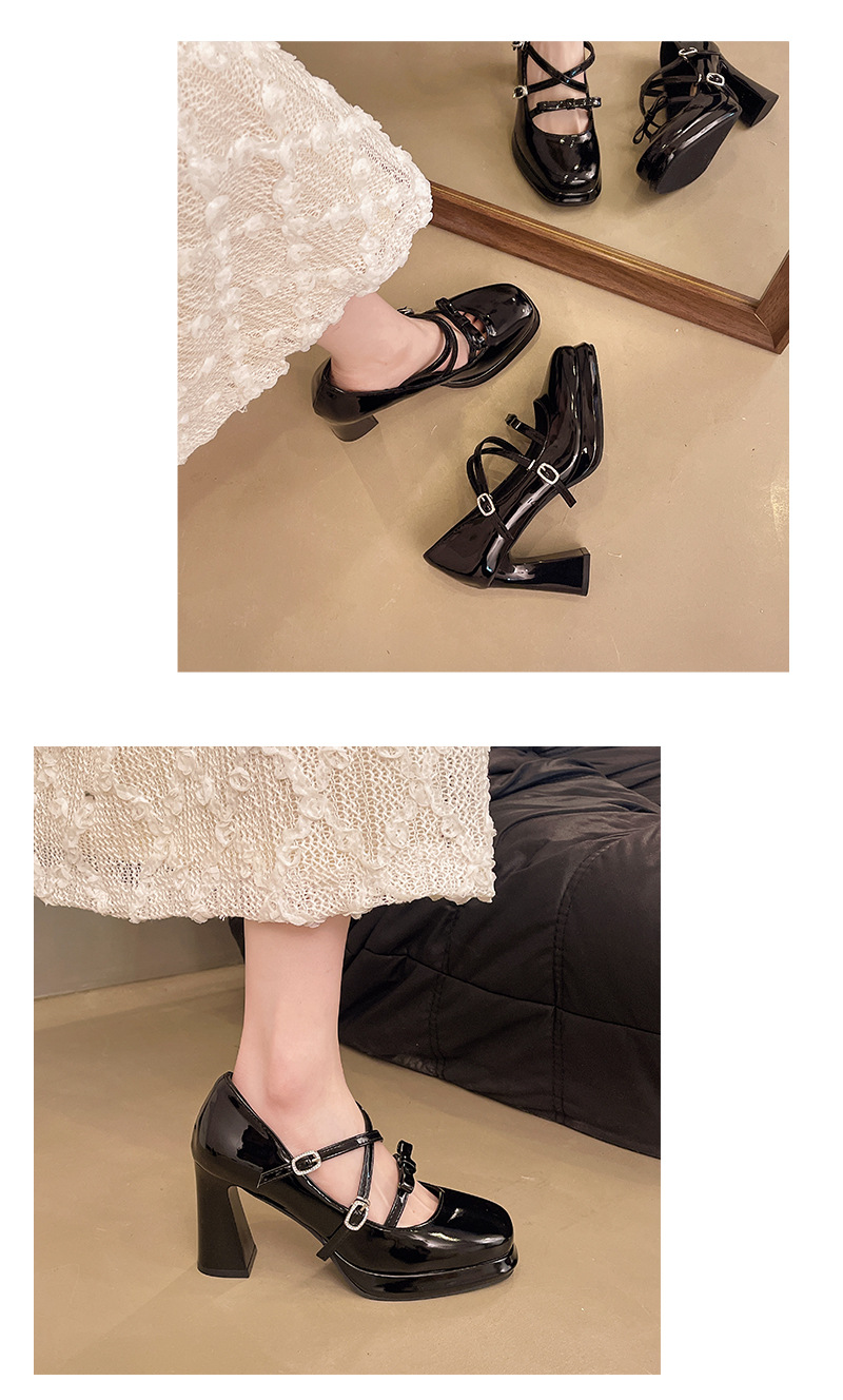 여성을위한 실버 프렌치 발레 두꺼운 굽 높이 증가 펌프 신발 2025 새로운 여름 스커트 복고풍 메리 제인 신발스토어 가기