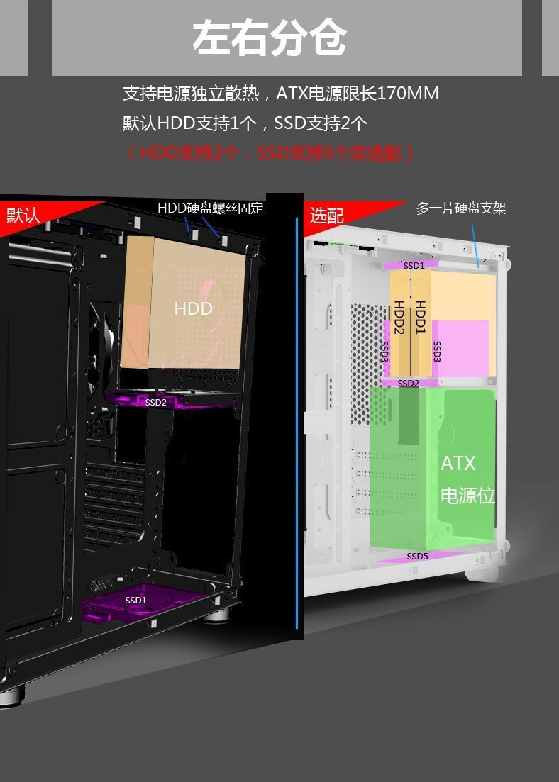 • S-FUTURE 흰색 섀시 - 자체 개발한 미래 브랜드 섀시 + 컬러풀한 조명 팬 5개