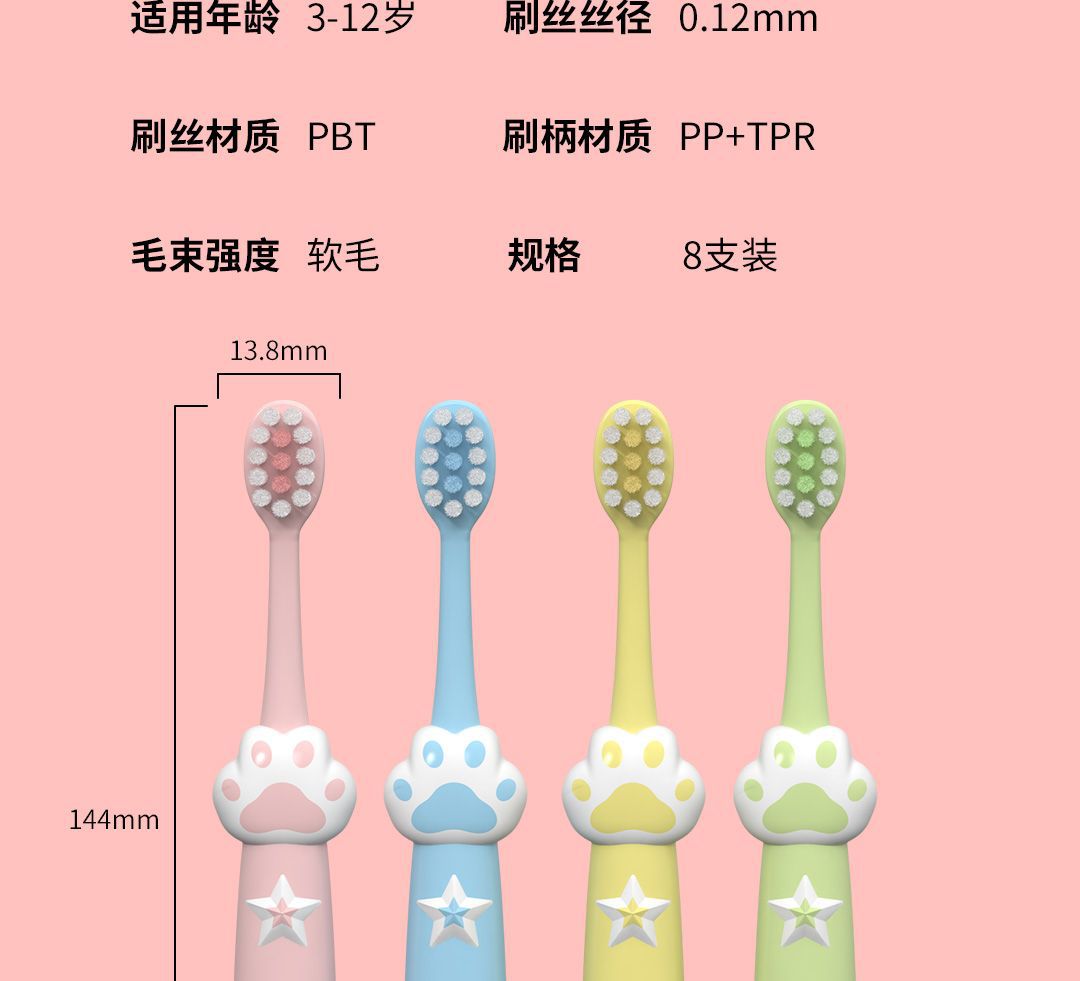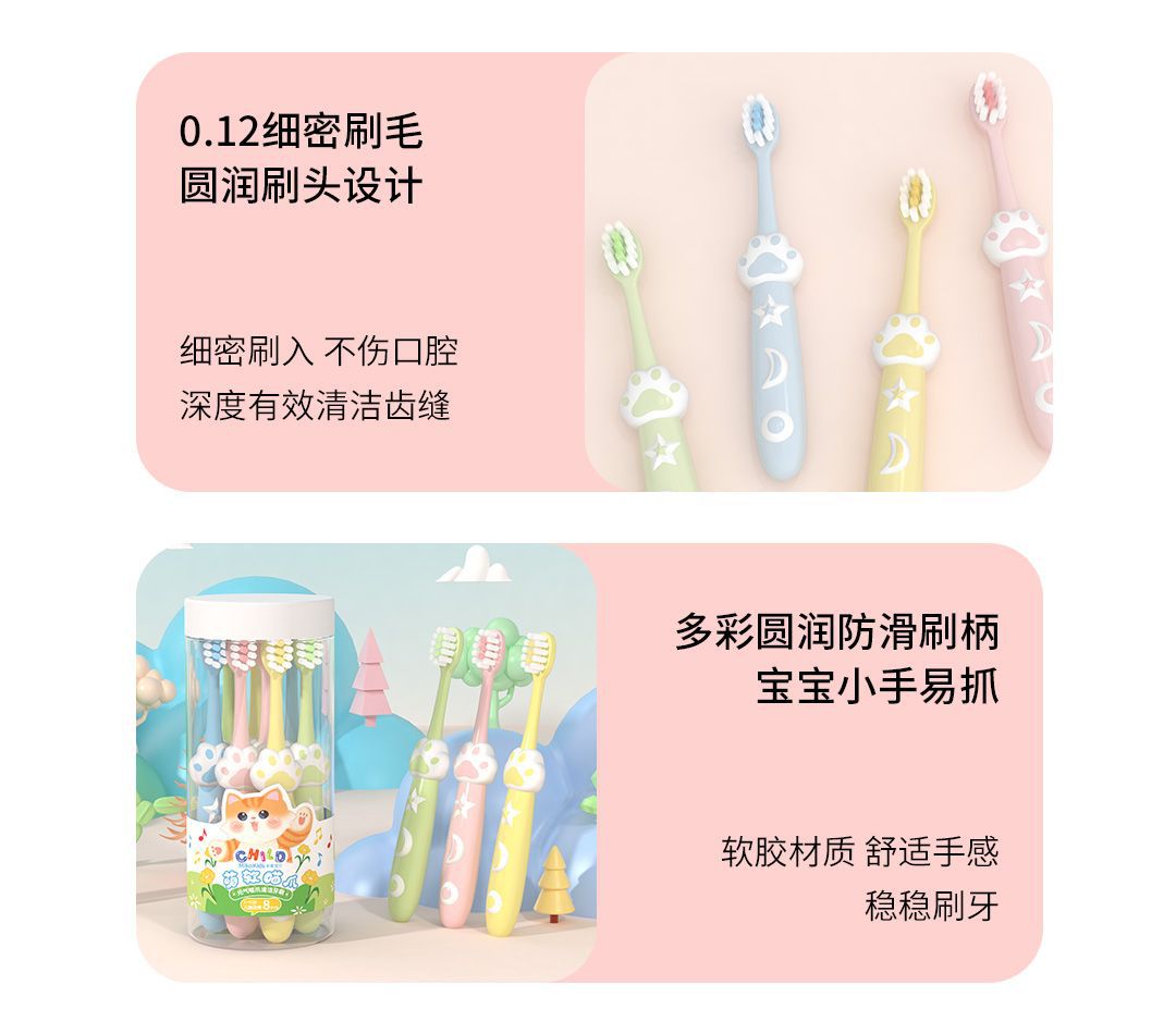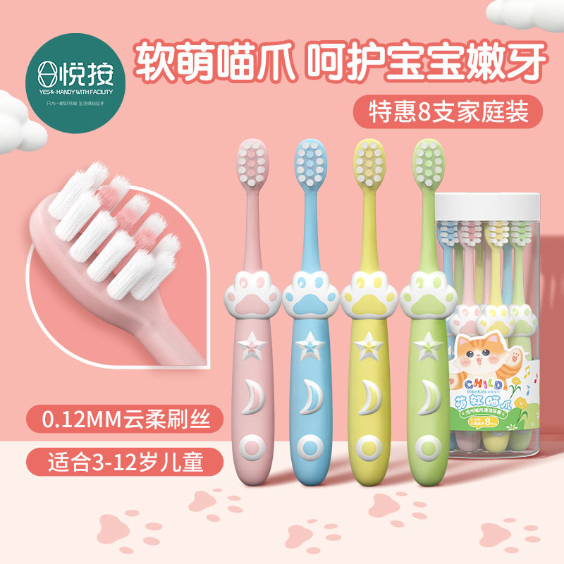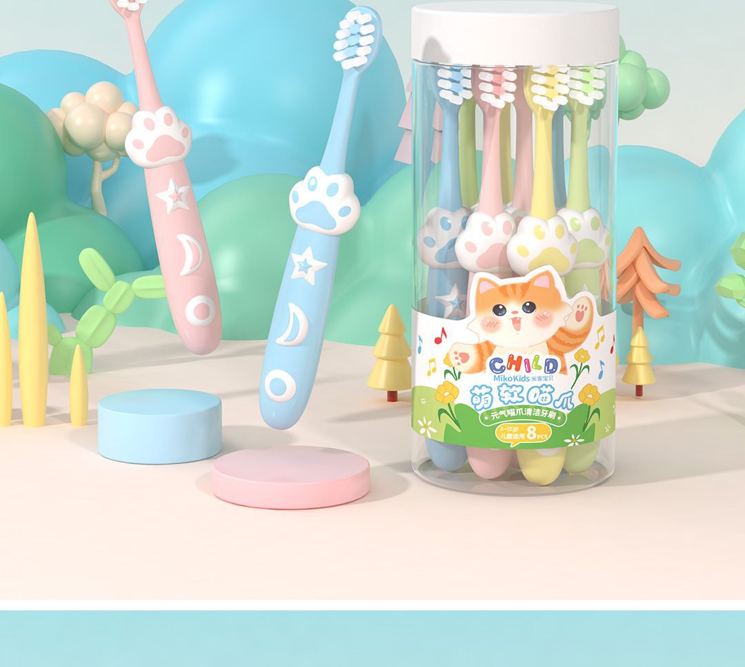 Mikebaby 어린이 칫솔 3-12 세 귀여운 고양이 발톱 부드러운 머리카락 잇몸 보호 가정용 백화점 8 배럴 도매