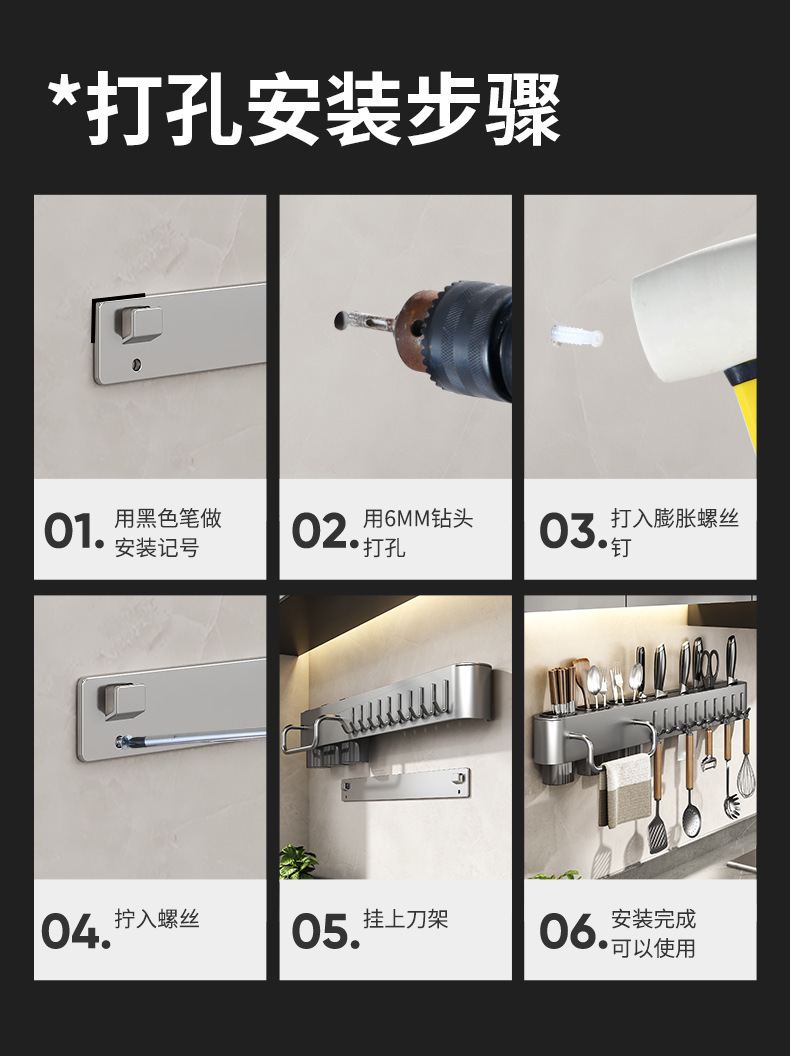제조업체는 주방 칼 홀더, 주걱, 숟가락, 젓가락 튜브, 걸레 막대, 펀치 없는 벽걸이, 다기능 수납 선반을 공급합니다.