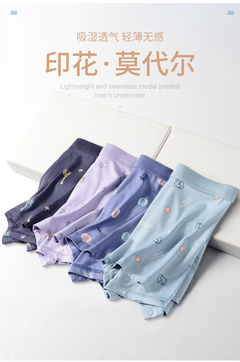 봄과 여름 인쇄 모달 남성 속옷 봉제 만화 인쇄 복서 팬티 남성 코튼 복서 팬티