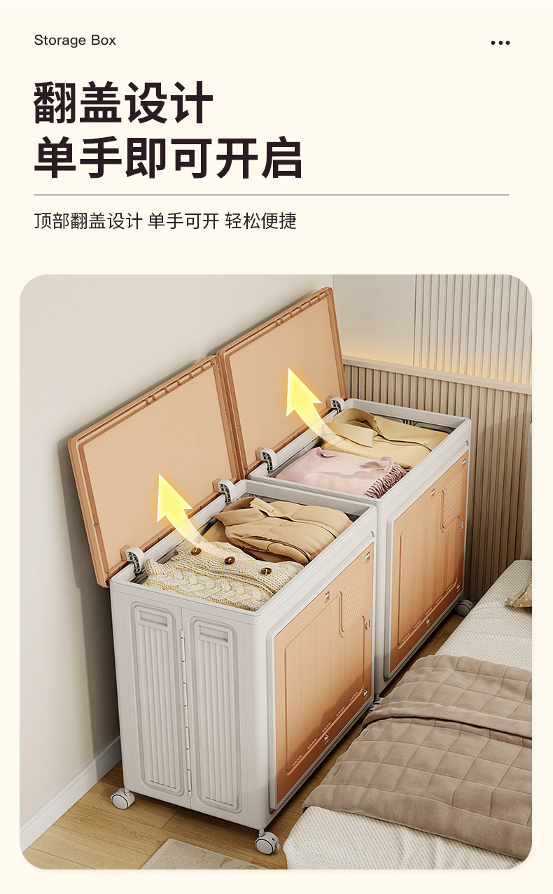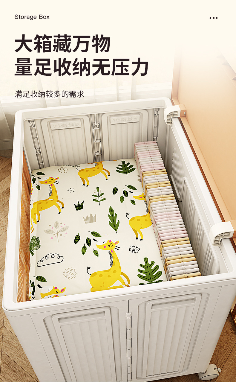설치가 필요 없는 대용량 수납함, 대형 가정용 수납함, 바퀴가 달린 플립탑, 접이식 의류 및 이불 수납함