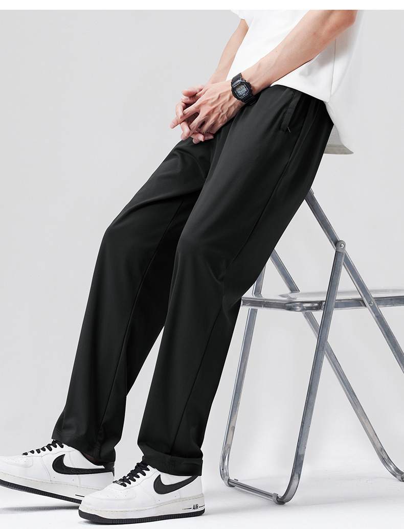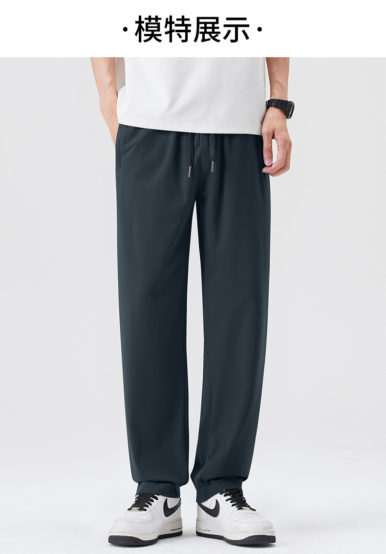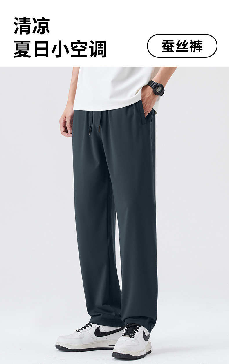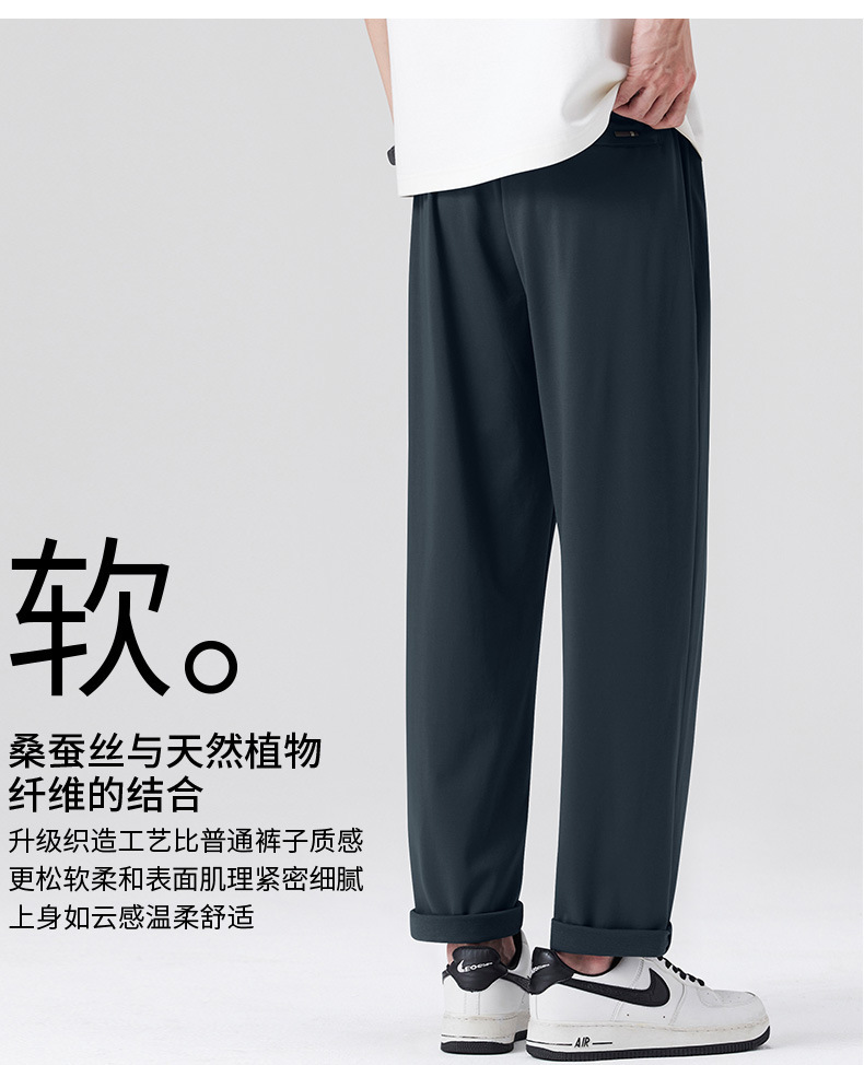 고급 뽕나무 실크 남성 캐주얼 팬츠 2026 여름 얇은 아이스 실크 스트레이트 루즈핏 드레이프 엘라스틱 허리 롱 팬츠스토어 가기