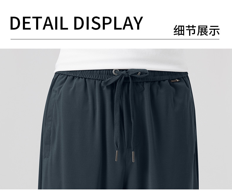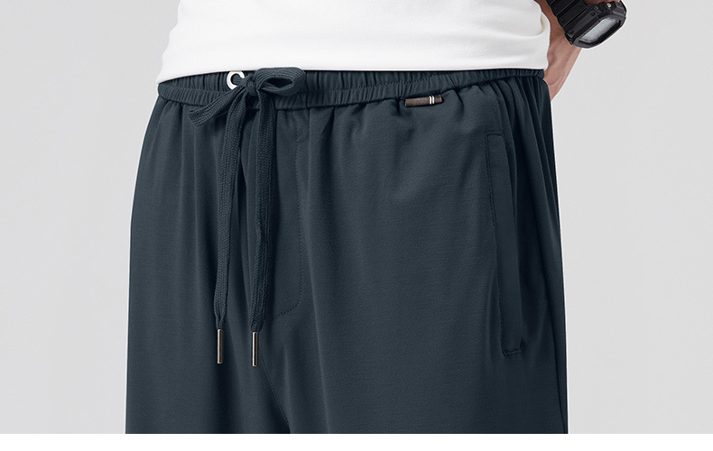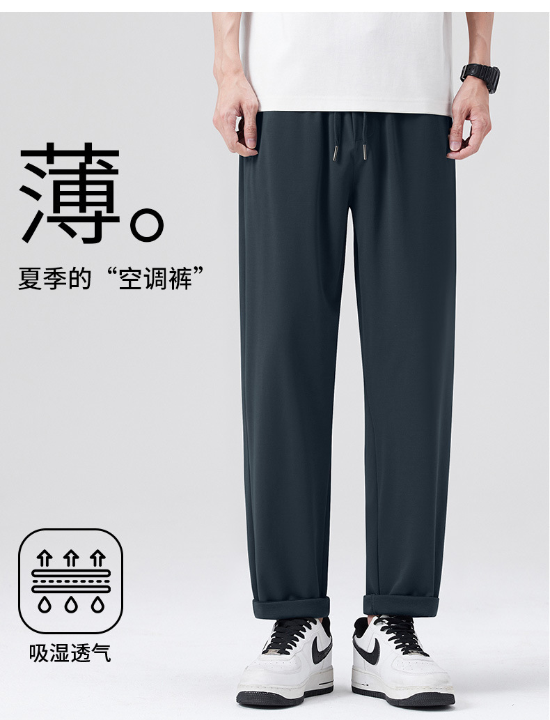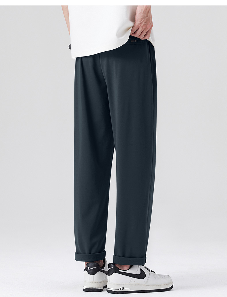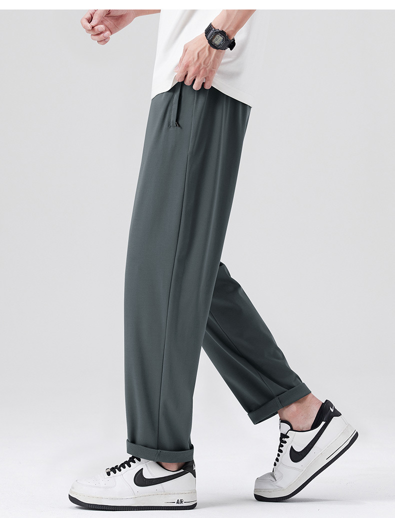 고급 뽕나무 실크 남성 캐주얼 팬츠 2026 여름 얇은 아이스 실크 스트레이트 루즈핏 드레이프 엘라스틱 허리 롱 팬츠스토어 가기