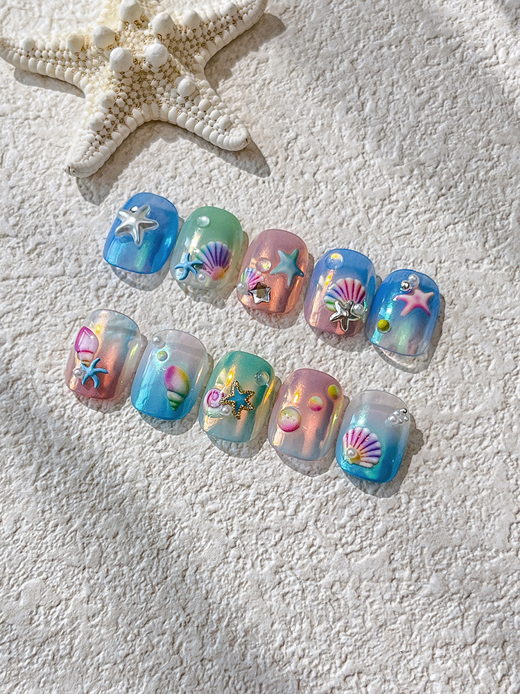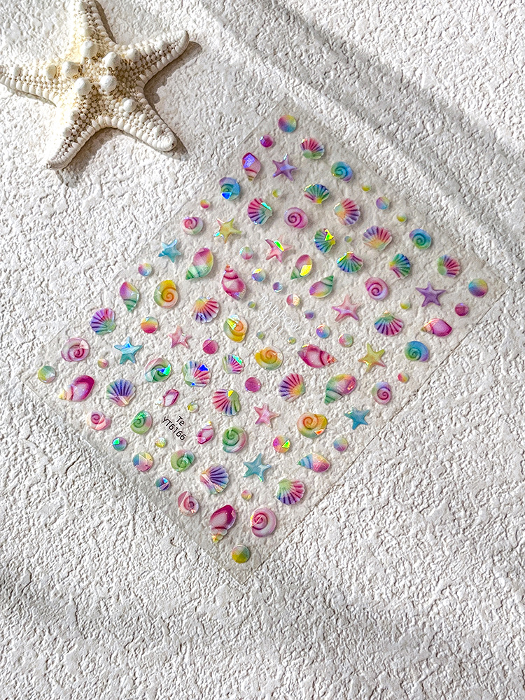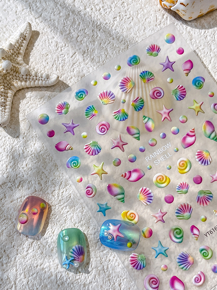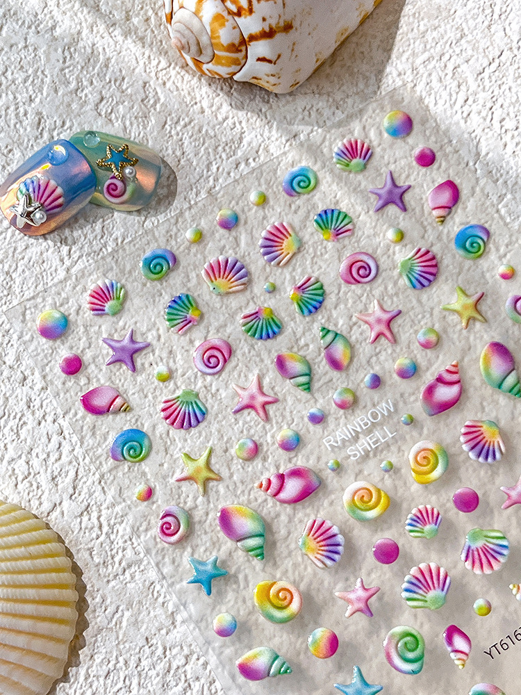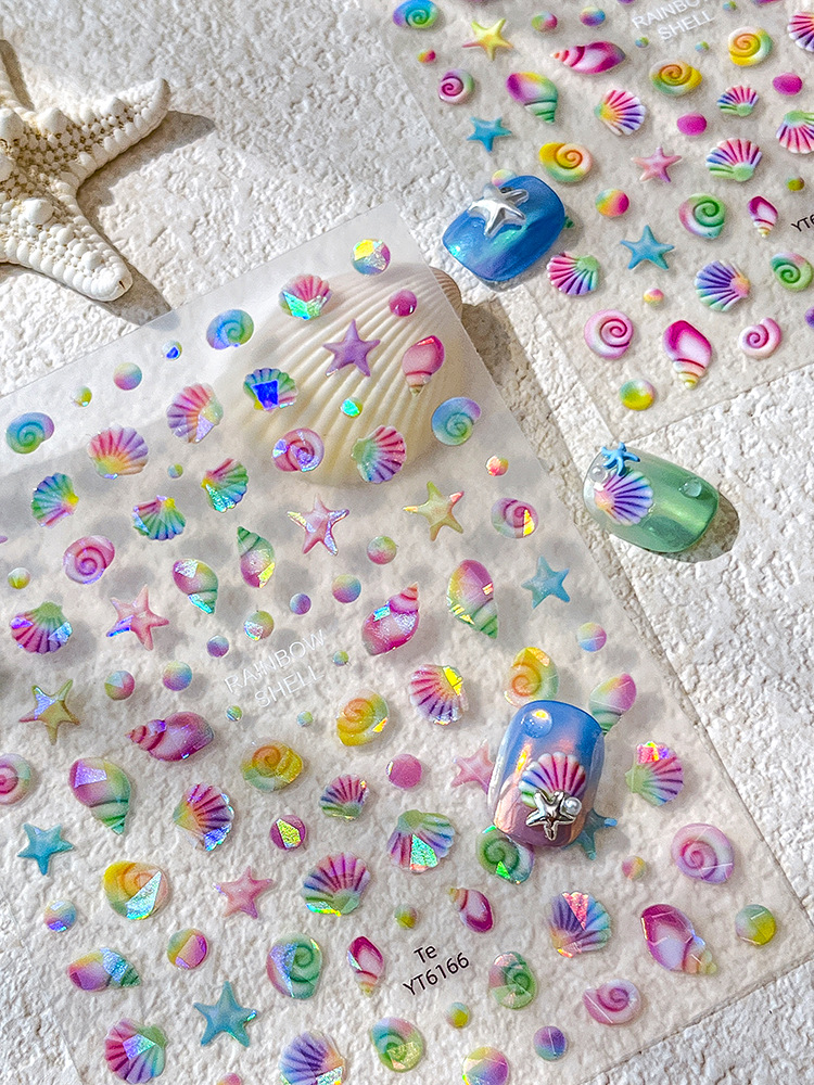 YITU 개미 쉘 빛 무지개 쉘 네일 아트 스티커 절묘한 깜박이는 귀여운 불가사리 장식 스티커 YT6166스토어 가기