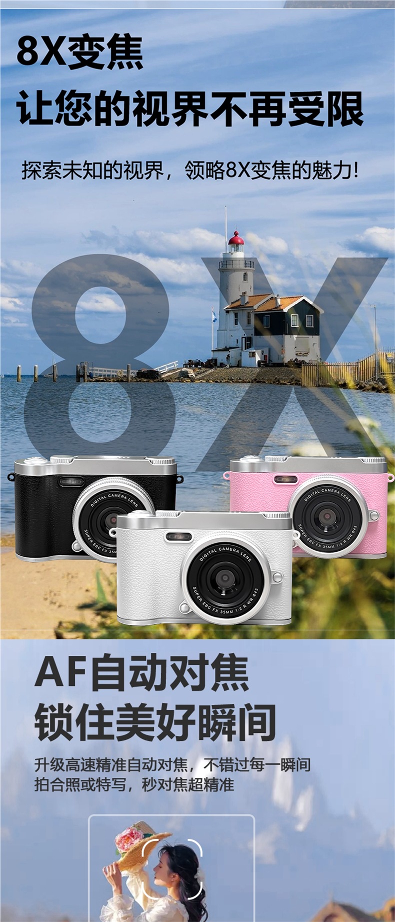 • 흰색 2.4inch IPS 화면 [비디오 필 라이트 + 필터 + 뷰티] 무료 32G 메모리 카드