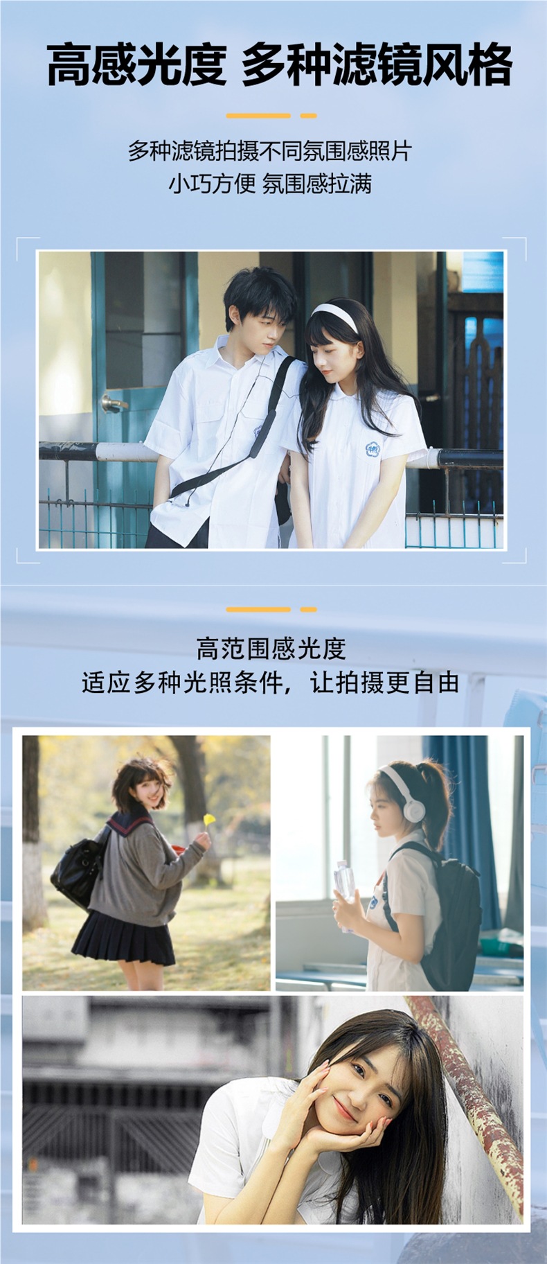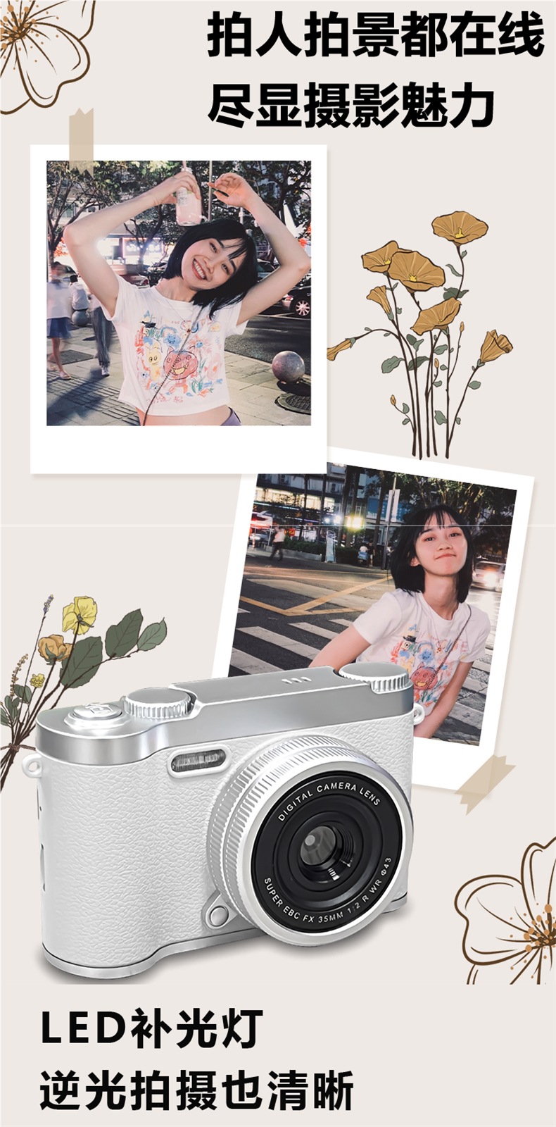 • 흰색 2.4inch IPS 화면 [비디오 필 라이트 + 필터 + 뷰티] 무료 64G 메모리 카드