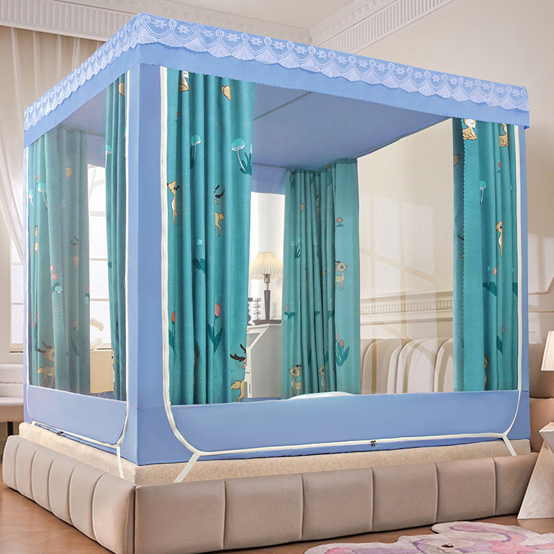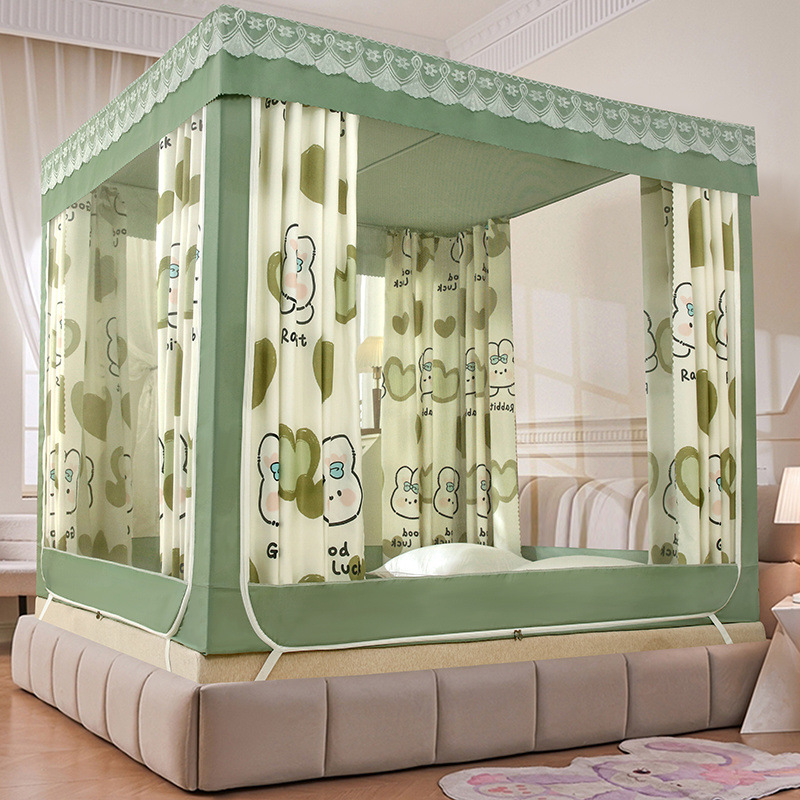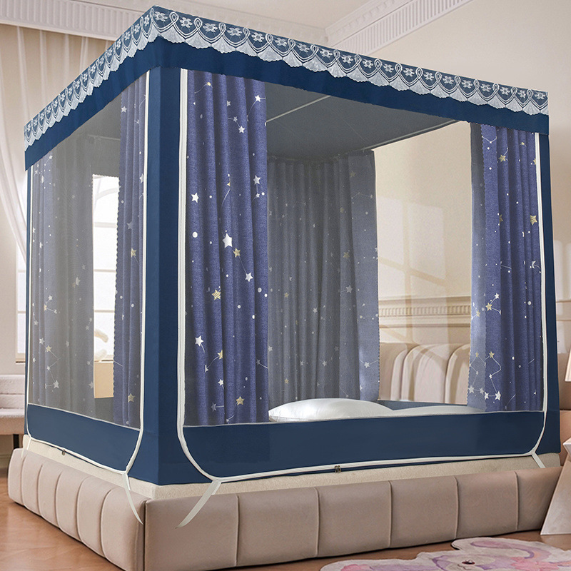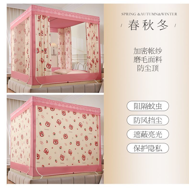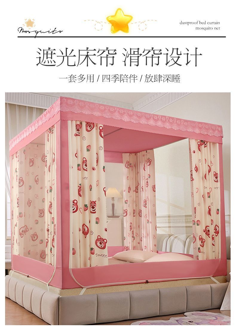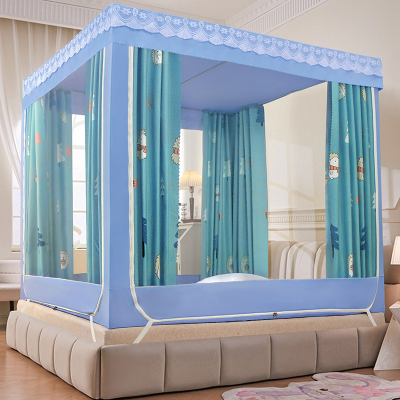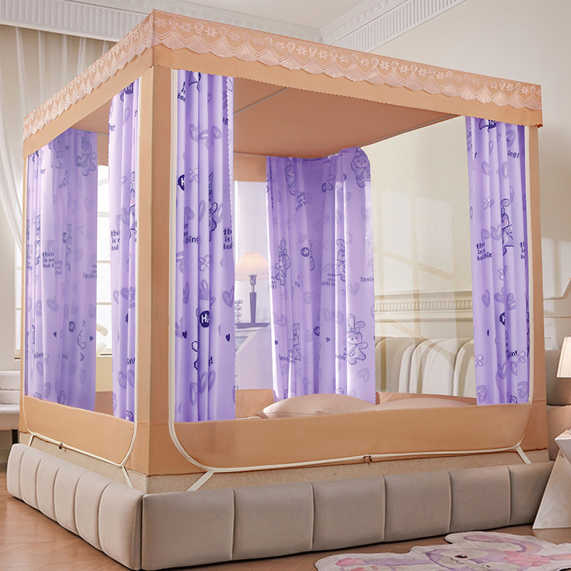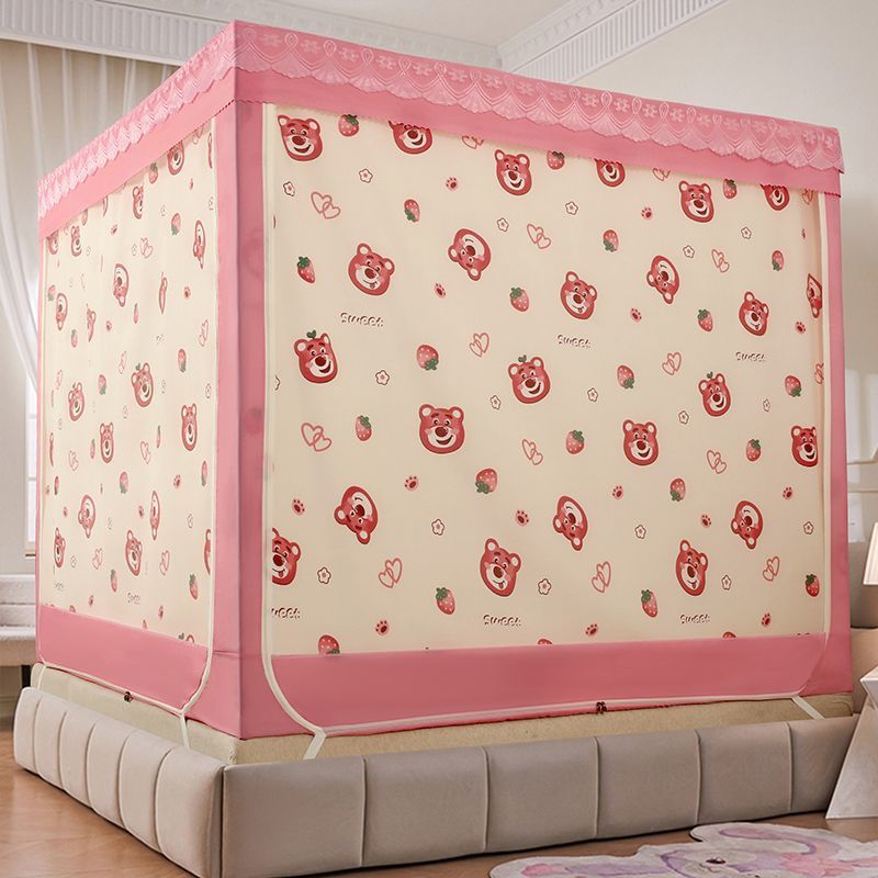 가정용 차광 침대 커튼 일체형 어린이 모기장 지퍼 3 도어 완전 밀폐형 침대 커튼 방진 탑 낙하 방지스토어 가기