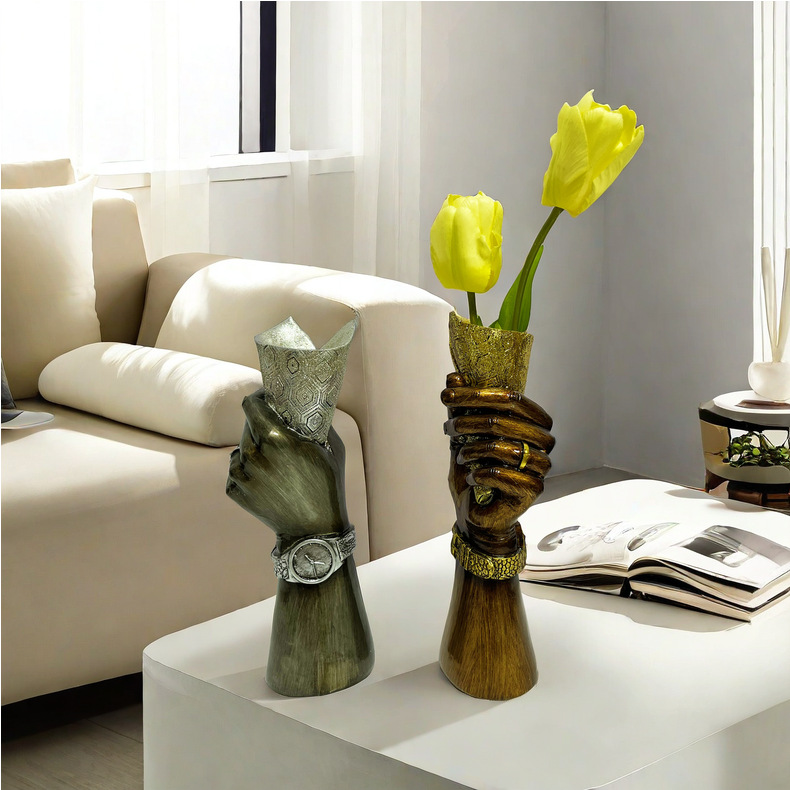 국경 간 인기 판매 북유럽 인 수지 꽃병 공예품 인체 꽃병 거실 간단한 꽃꽂이 팔 선물