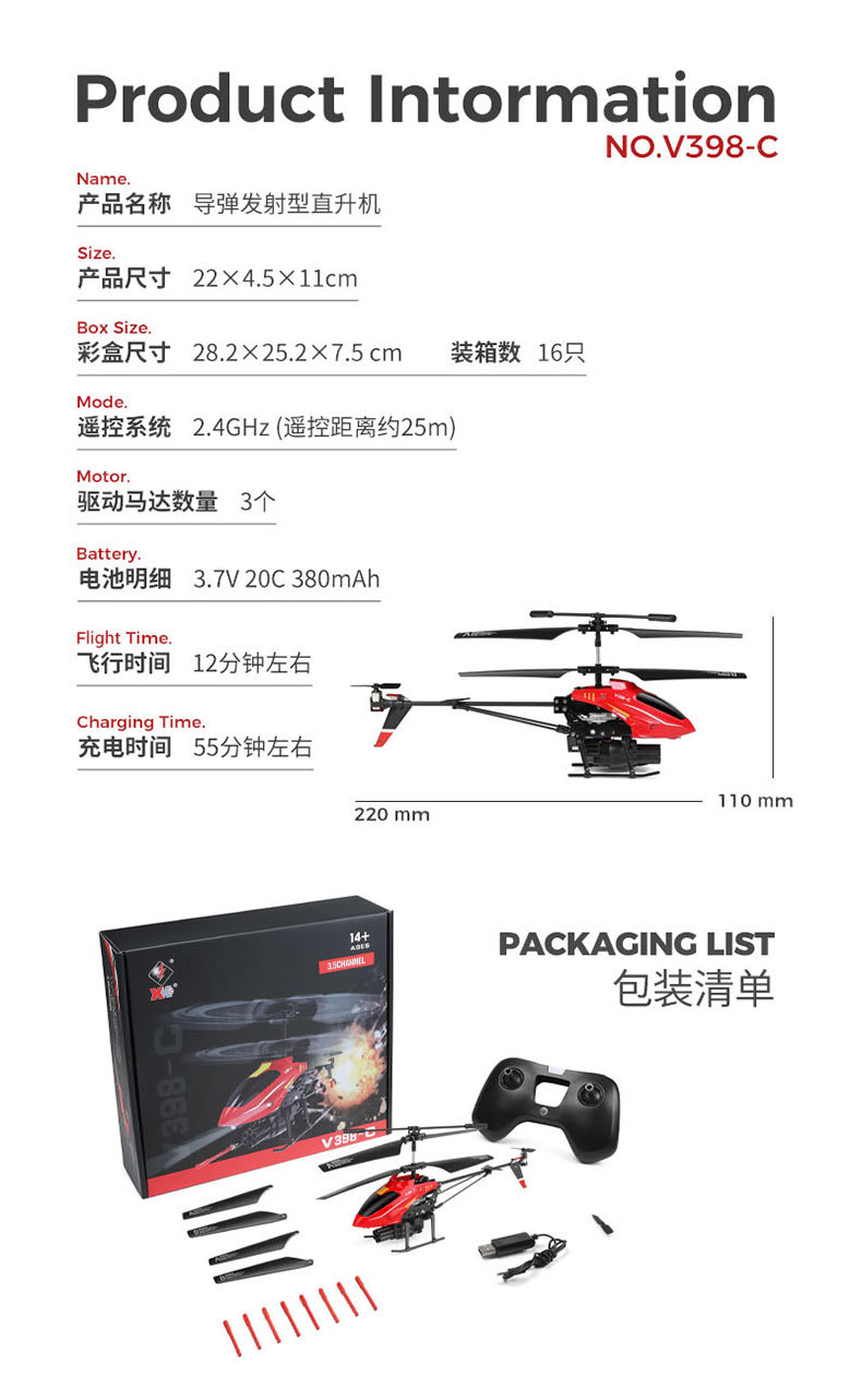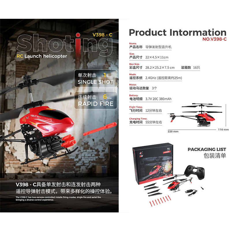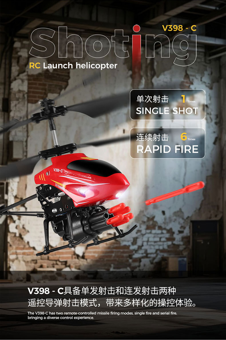 Weili V398-C 원격 제어 항공기는 미사일 2.4G 헬리콥터 3.5 공기압 고도 고정 RC 항공기 모델을 동시에 발사할 수 있습니다.스토어 가기