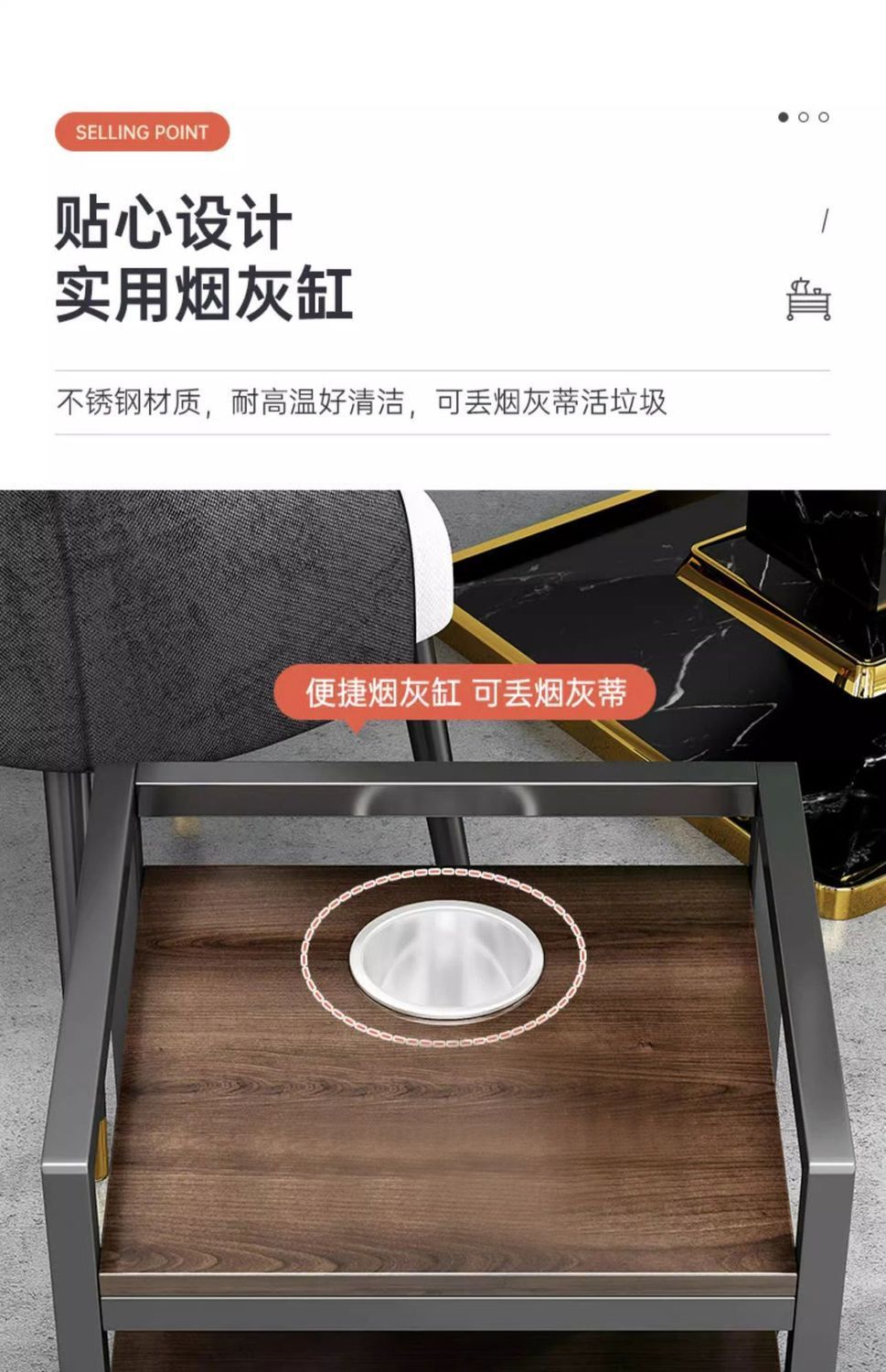 • 마작 테이블 사이드 테이블 - 블랙 월넛 컬러 - 더블 레이어 + 재떨이 + 바퀴