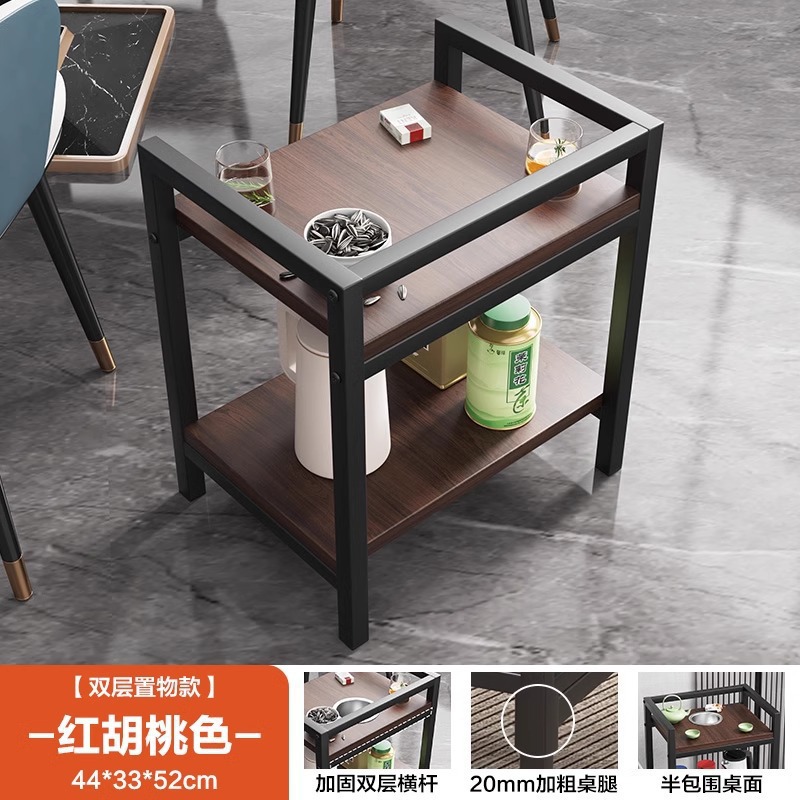 • 마작 테이블 사이드 테이블 - 레드 월넛 컬러 - 더블 레이어 + 재떨이 + 바퀴