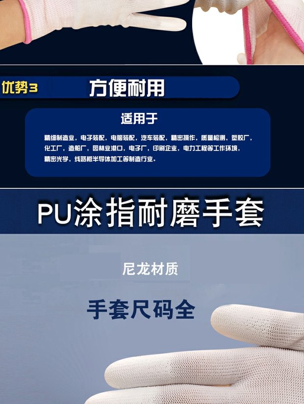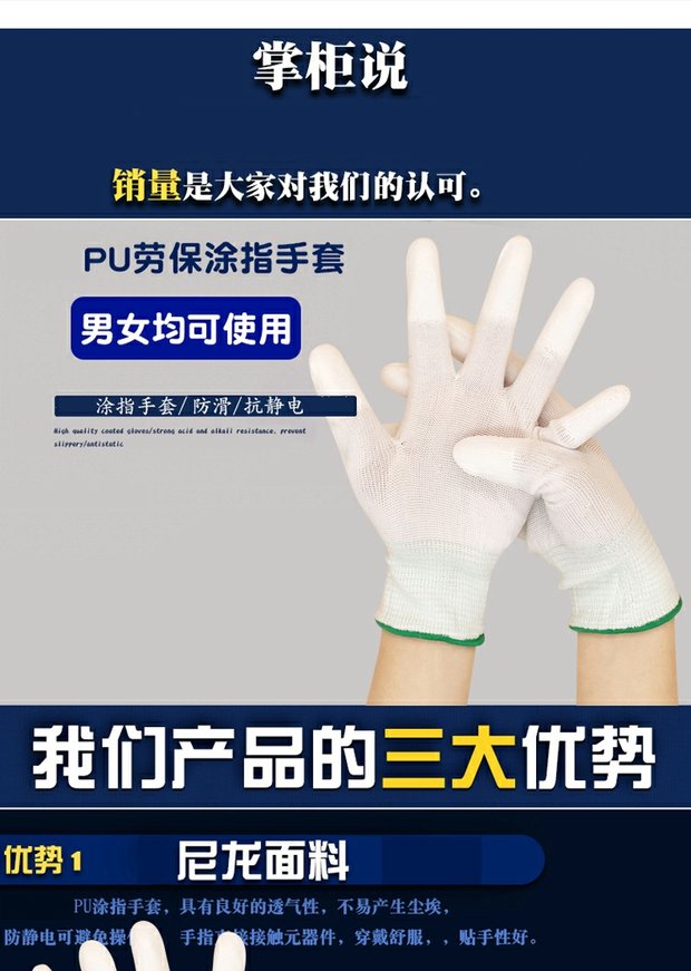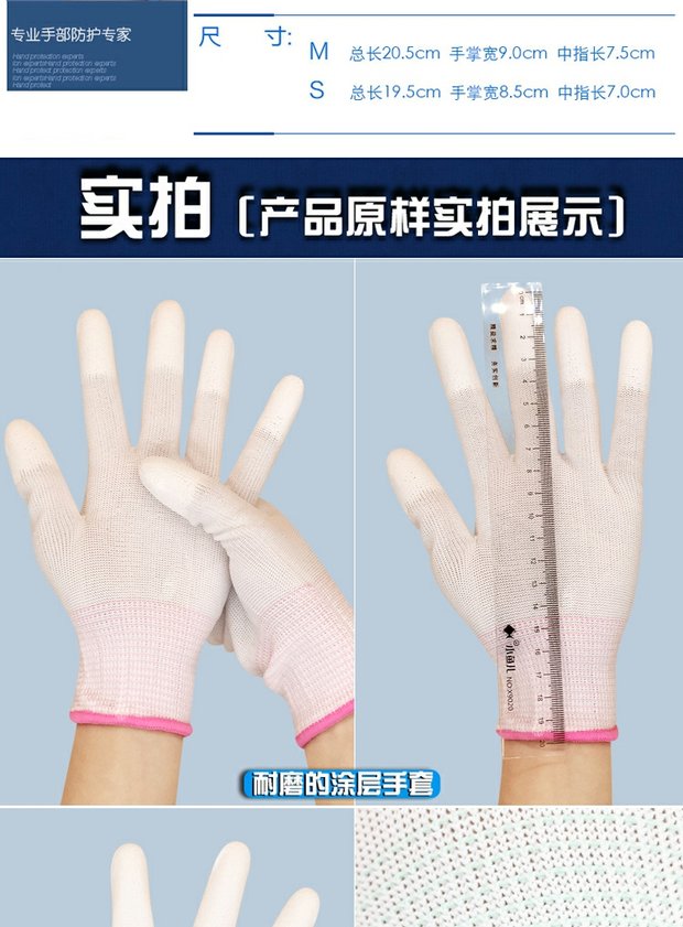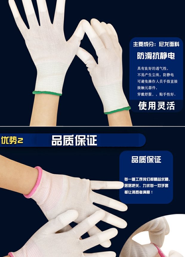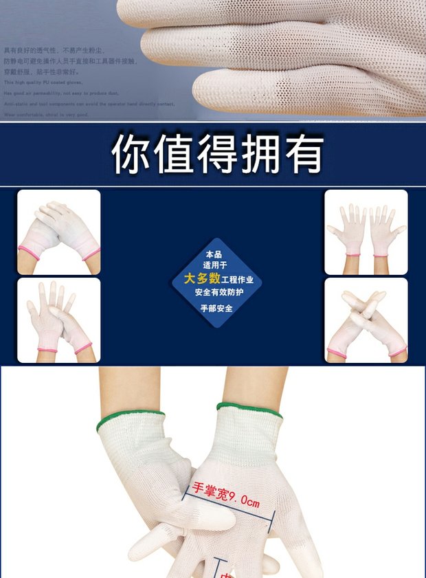 작업용 PU 통기성 나일론 장갑, 노동 보호, 미끄럼 방지, 정전기 방지, 손가락 코팅, 내마모성, 먼지 없는 작업스토어 가기