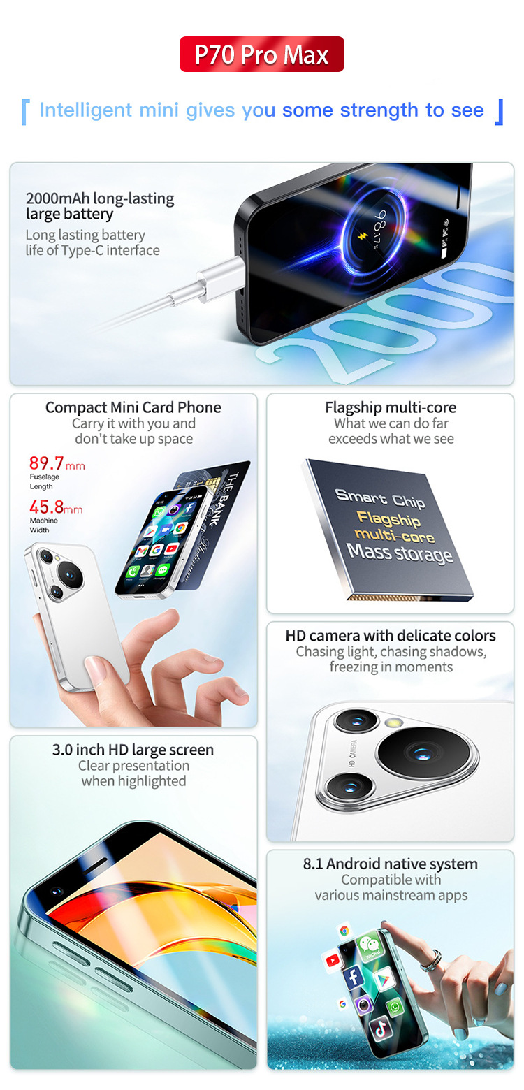 국경 간 휴대 전화 P70promax 미니 스마트 소형 휴대 전화 3inch 쿼드 코어 프로세서 Google Android 외국어 도매스토어 가기