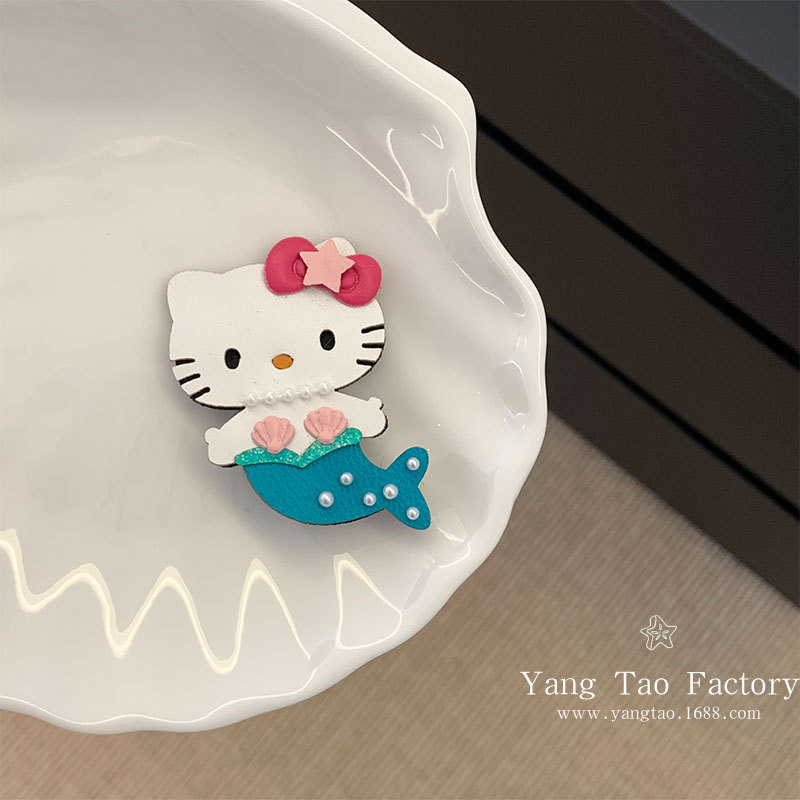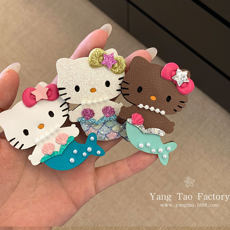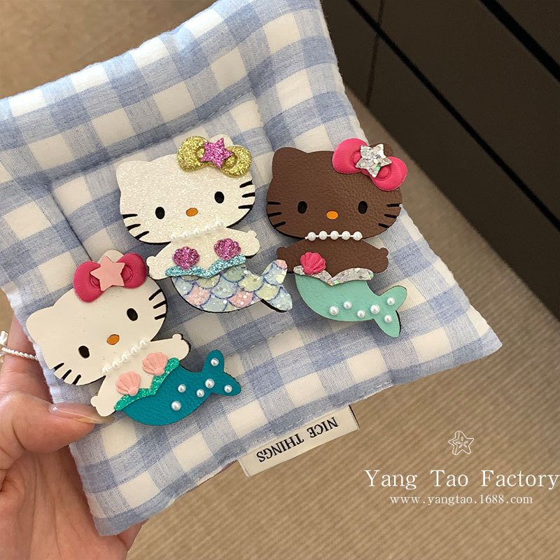 머메이드 키티 반짝이는 고양이 머리핀 덕빌 클립 재미있는 소녀의 하트 모양 머리 앞머리 클립 사이드 클립 머리핀스토어 가기