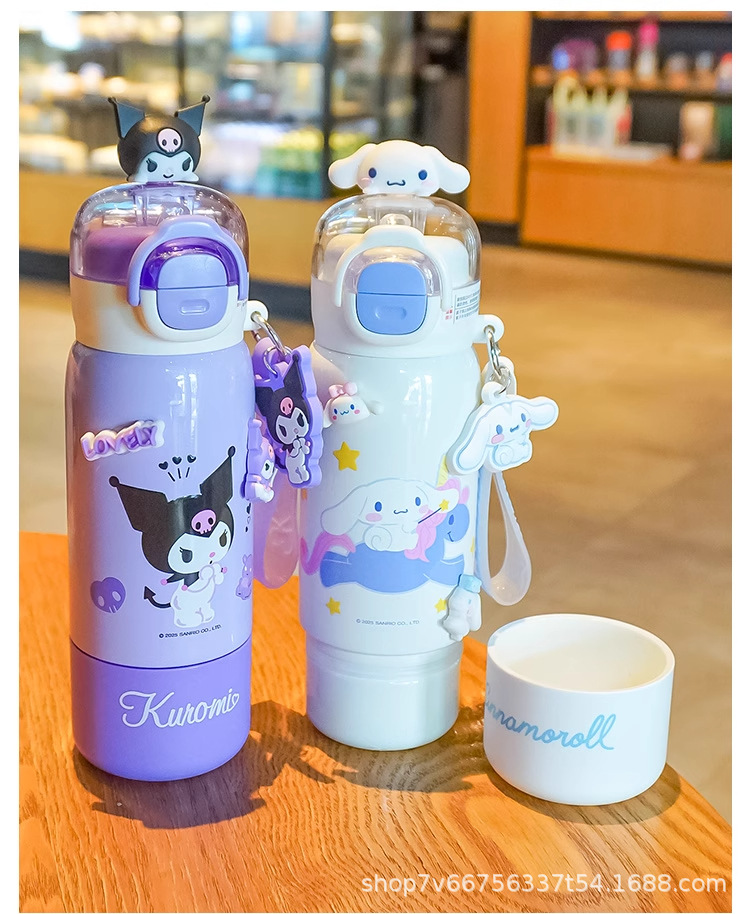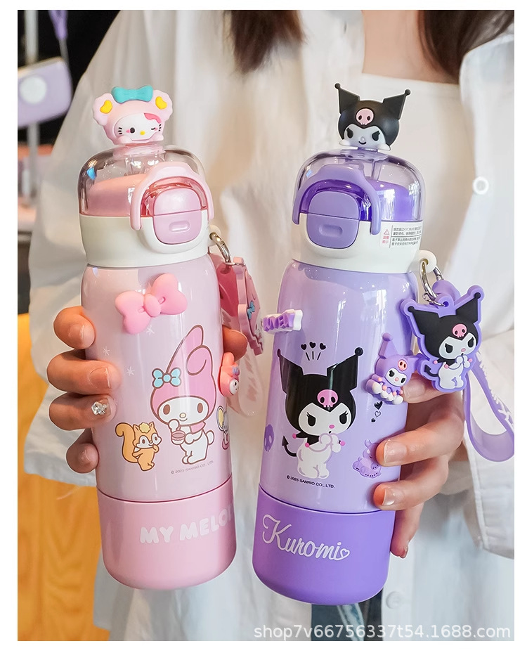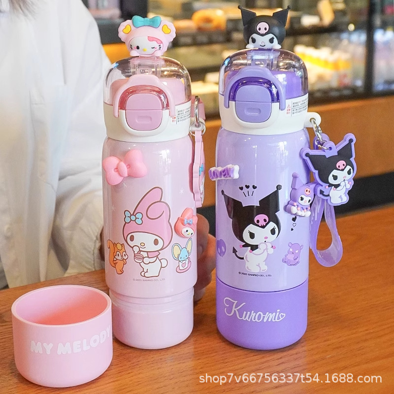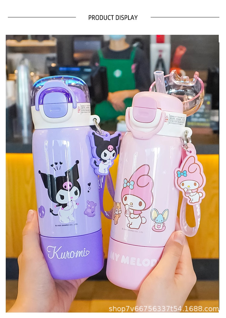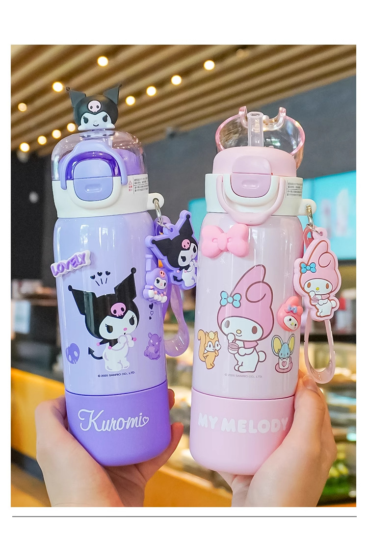 학교에 가는 소녀들을 위한 쿠로미 어린이 보온병 컵 2025 새로운 대용량 및 고급스러운 학생 이중 마시는 컵