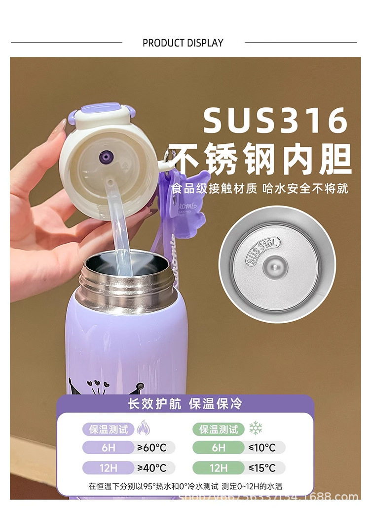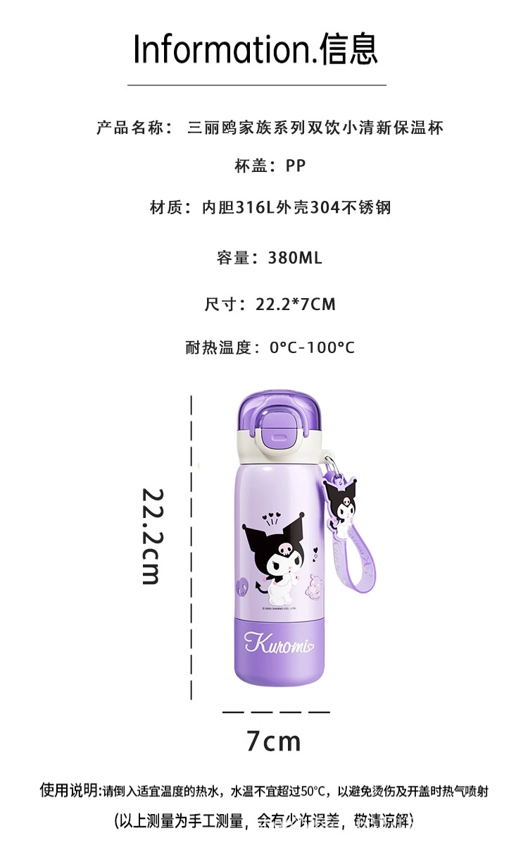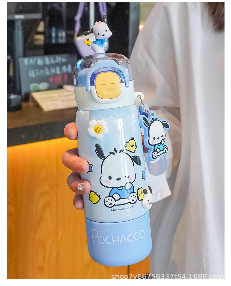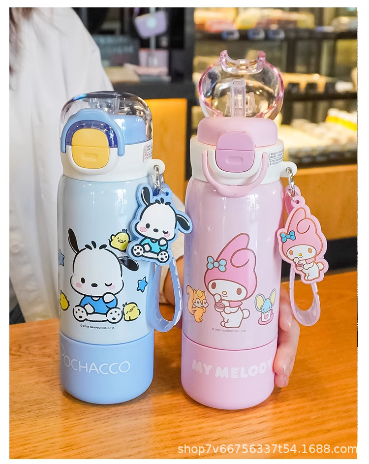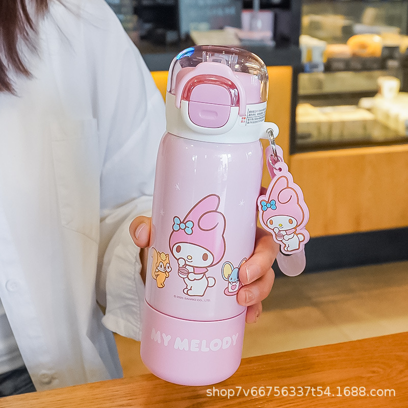 학교에 가는 소녀들을 위한 쿠로미 어린이 보온병 컵 2025 새로운 대용량 및 고급스러운 학생 이중 마시는 컵