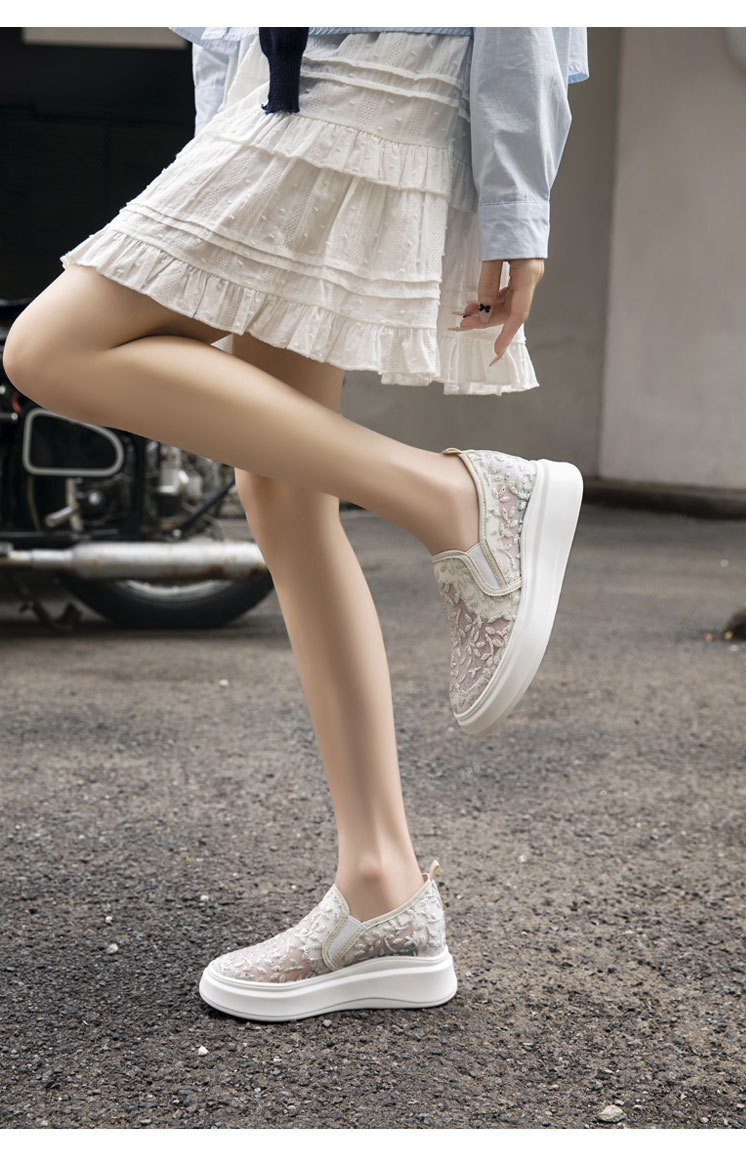 내부 높이가 증가한 여성용 메쉬 화이트 슈즈 2025 새로운 두꺼운 밑창 로퍼 소형 사이즈 31 32 33 통기성이 뛰어난 어부 신발스토어 가기