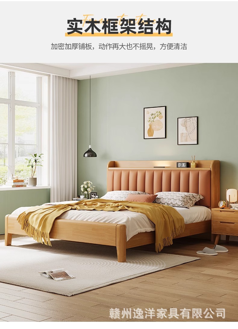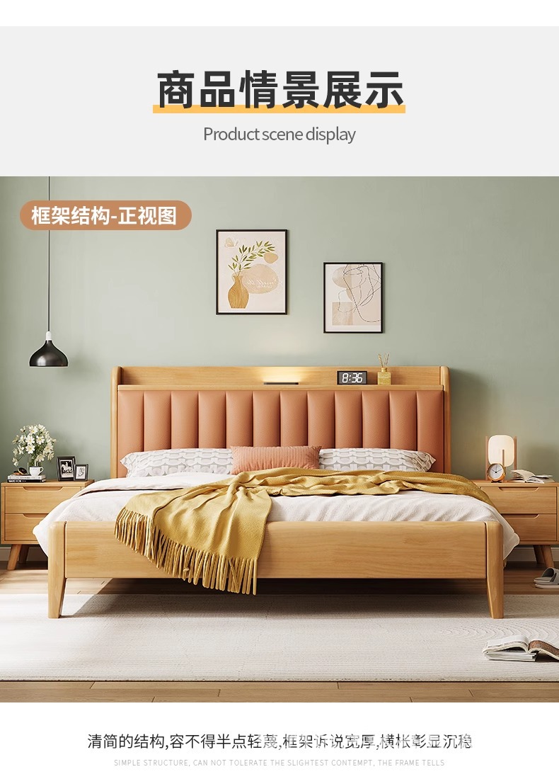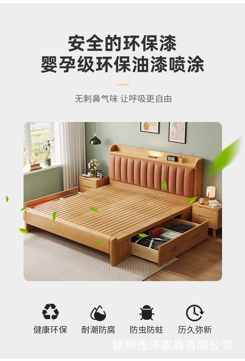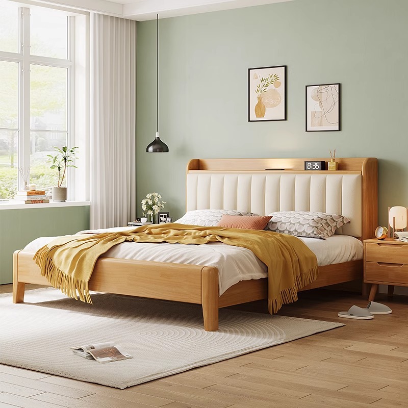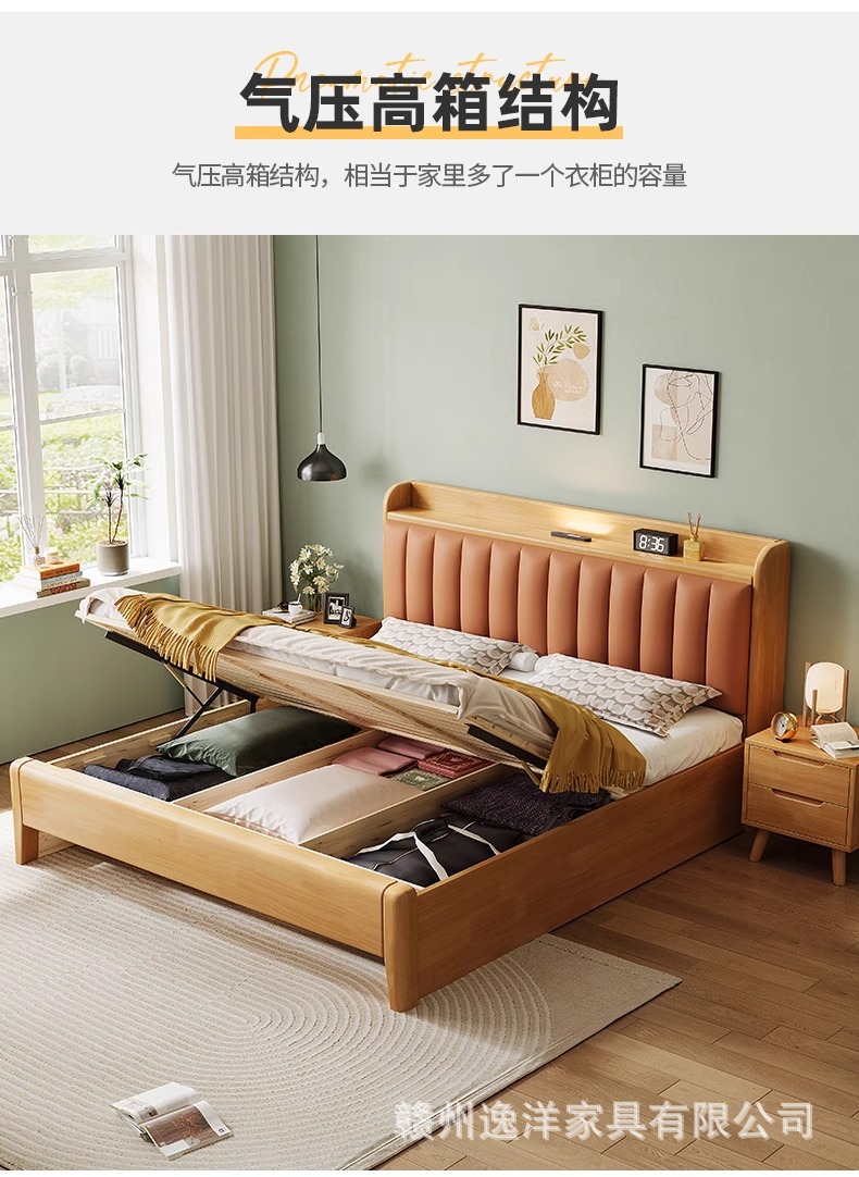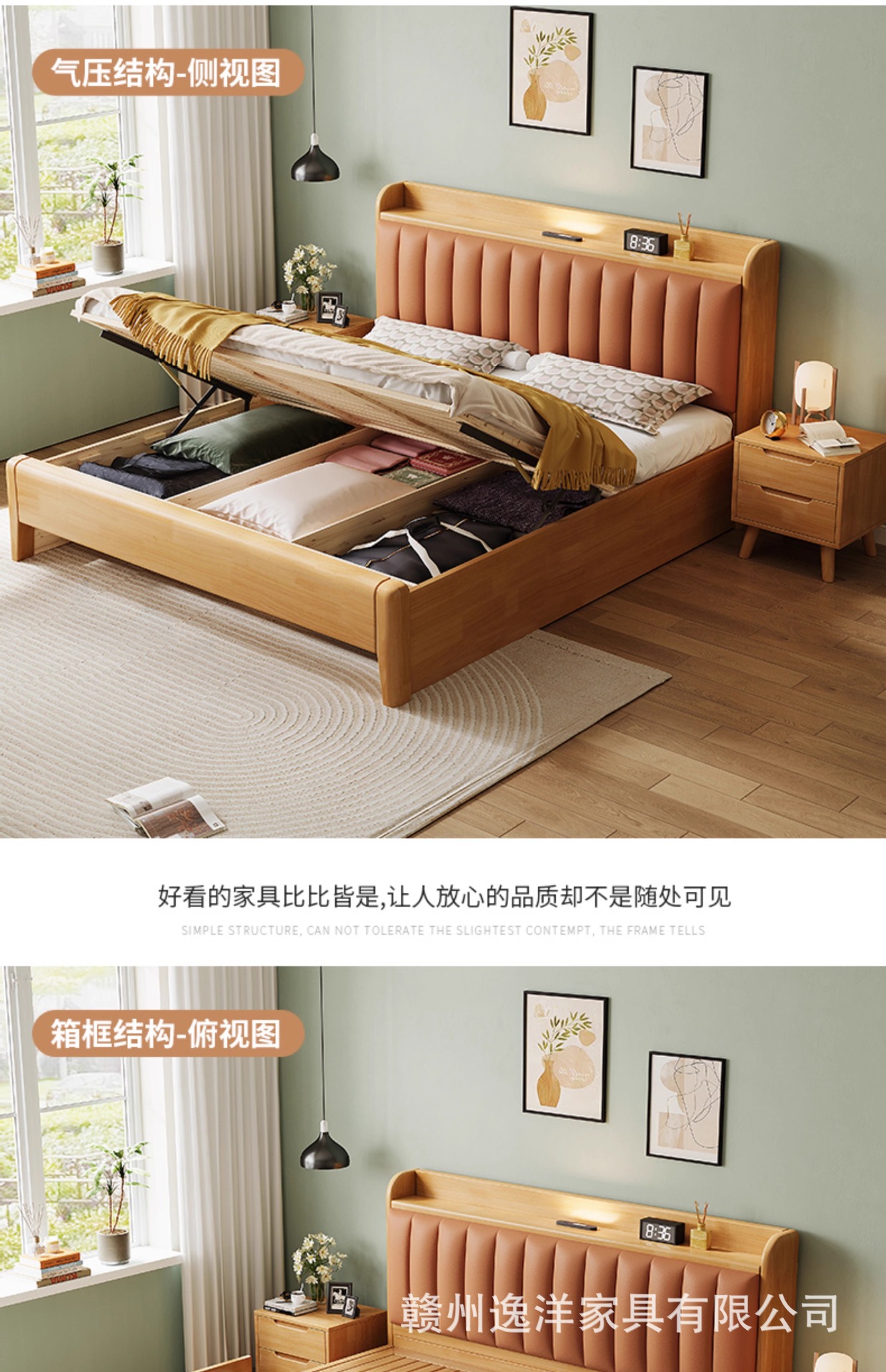 북유럽 가정용 고무 나무 1.8m 더블 침대 현대 미니멀리스트 1.2m 싱글 수납 일체형 침대 마스터 침실 가구스토어 가기