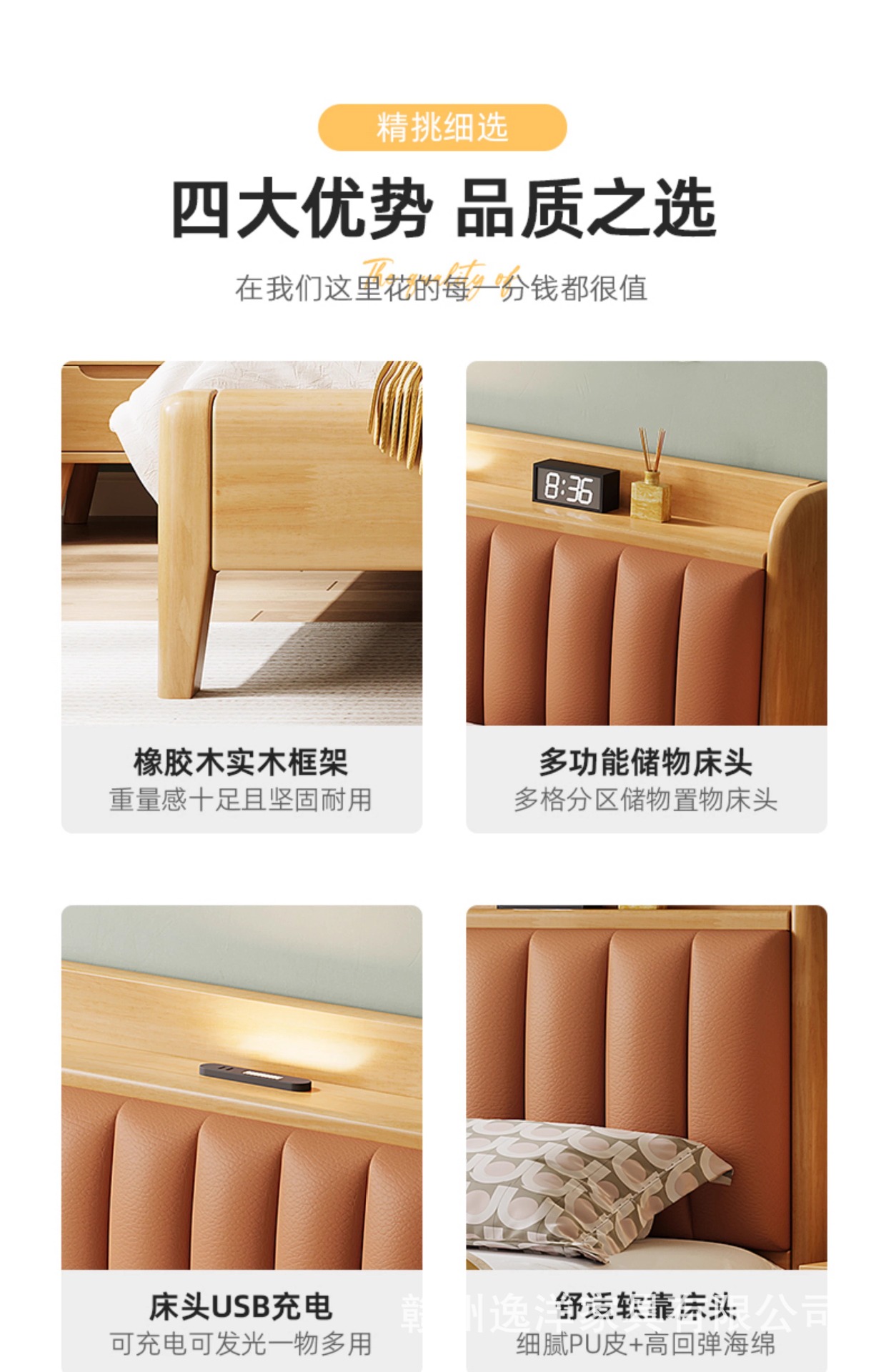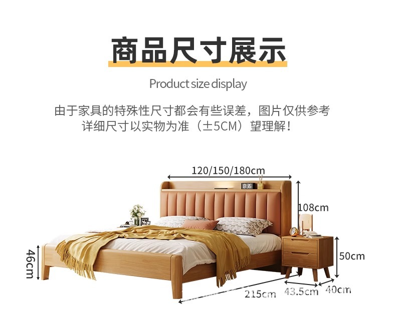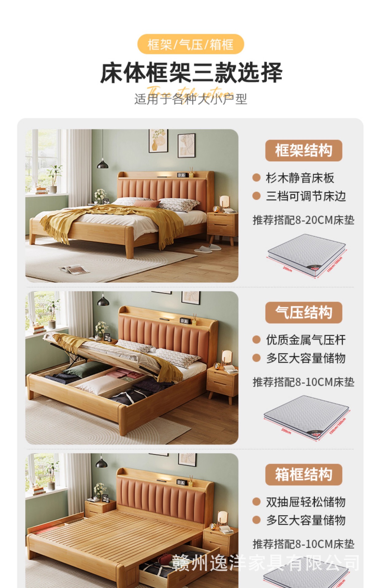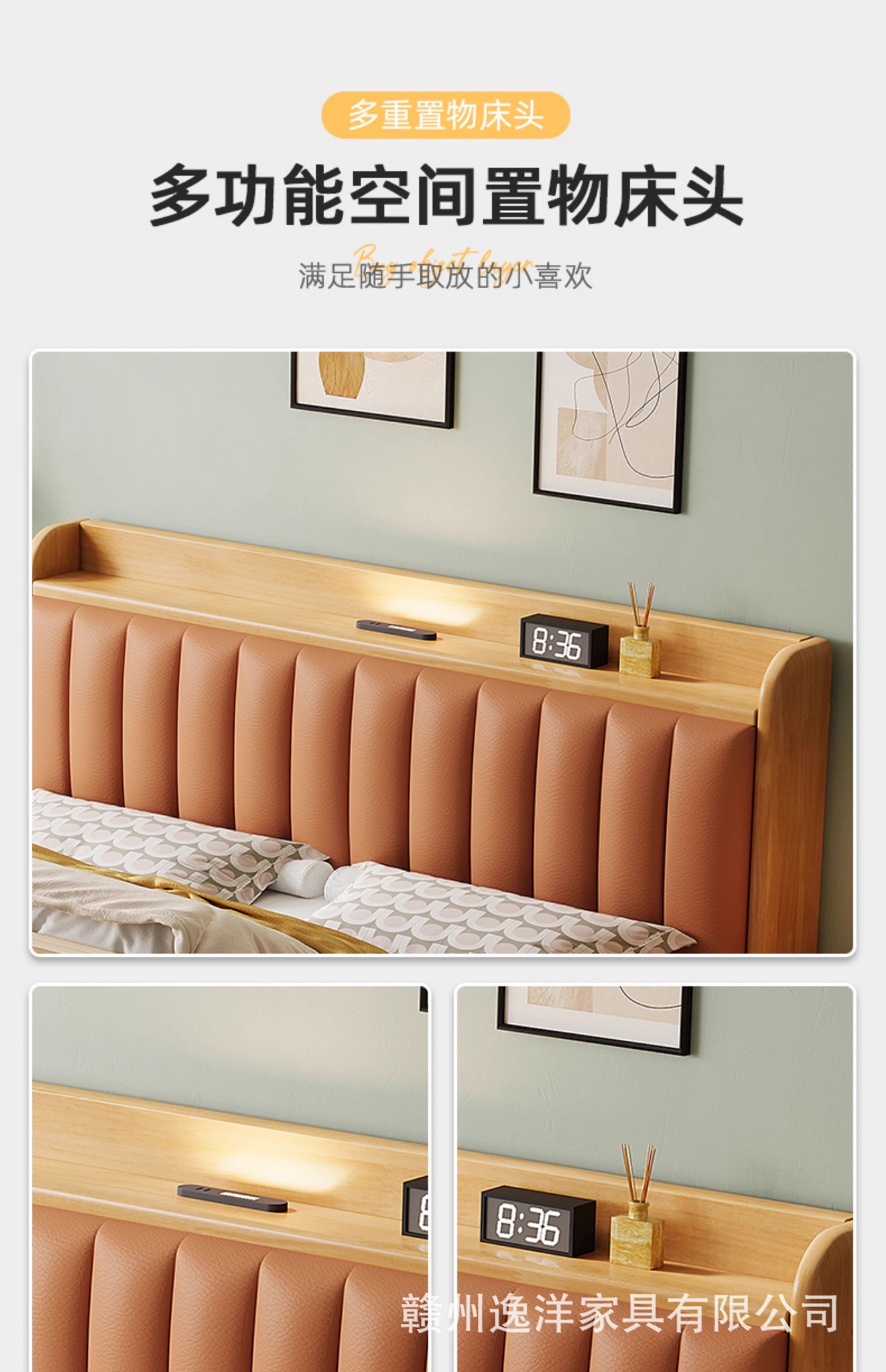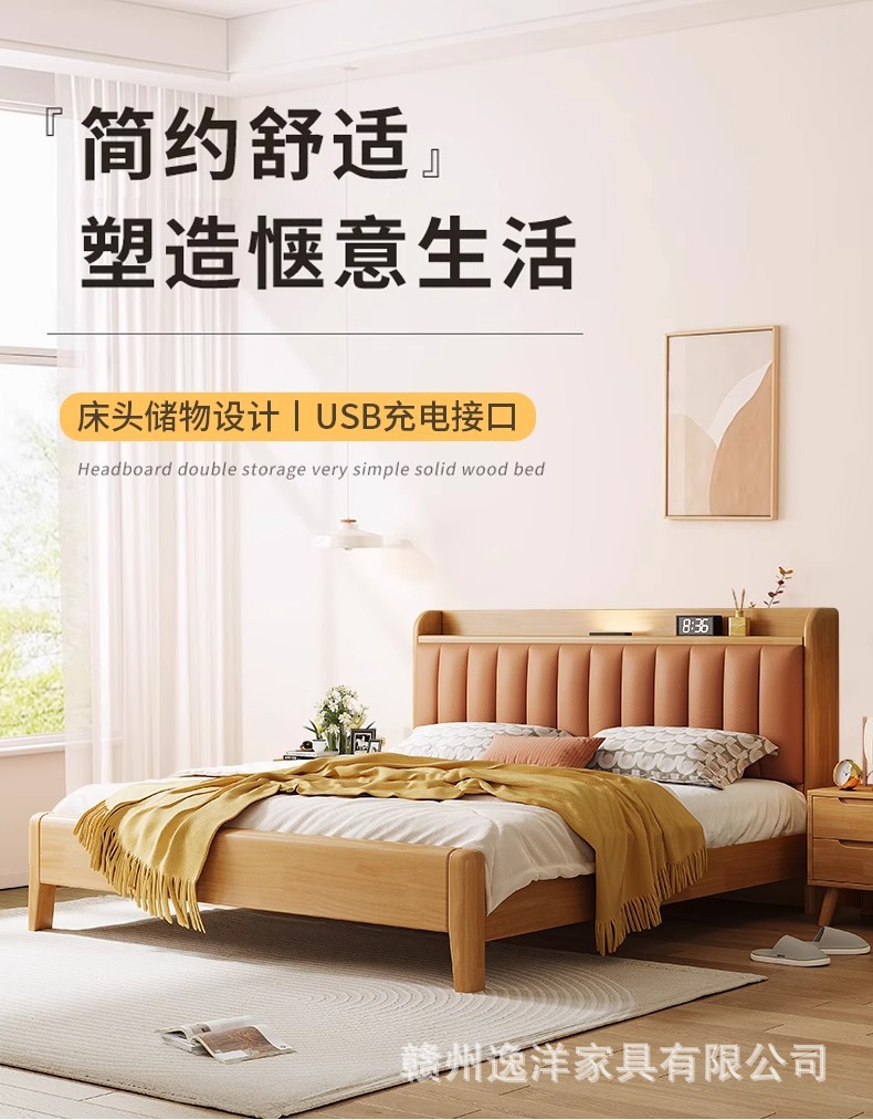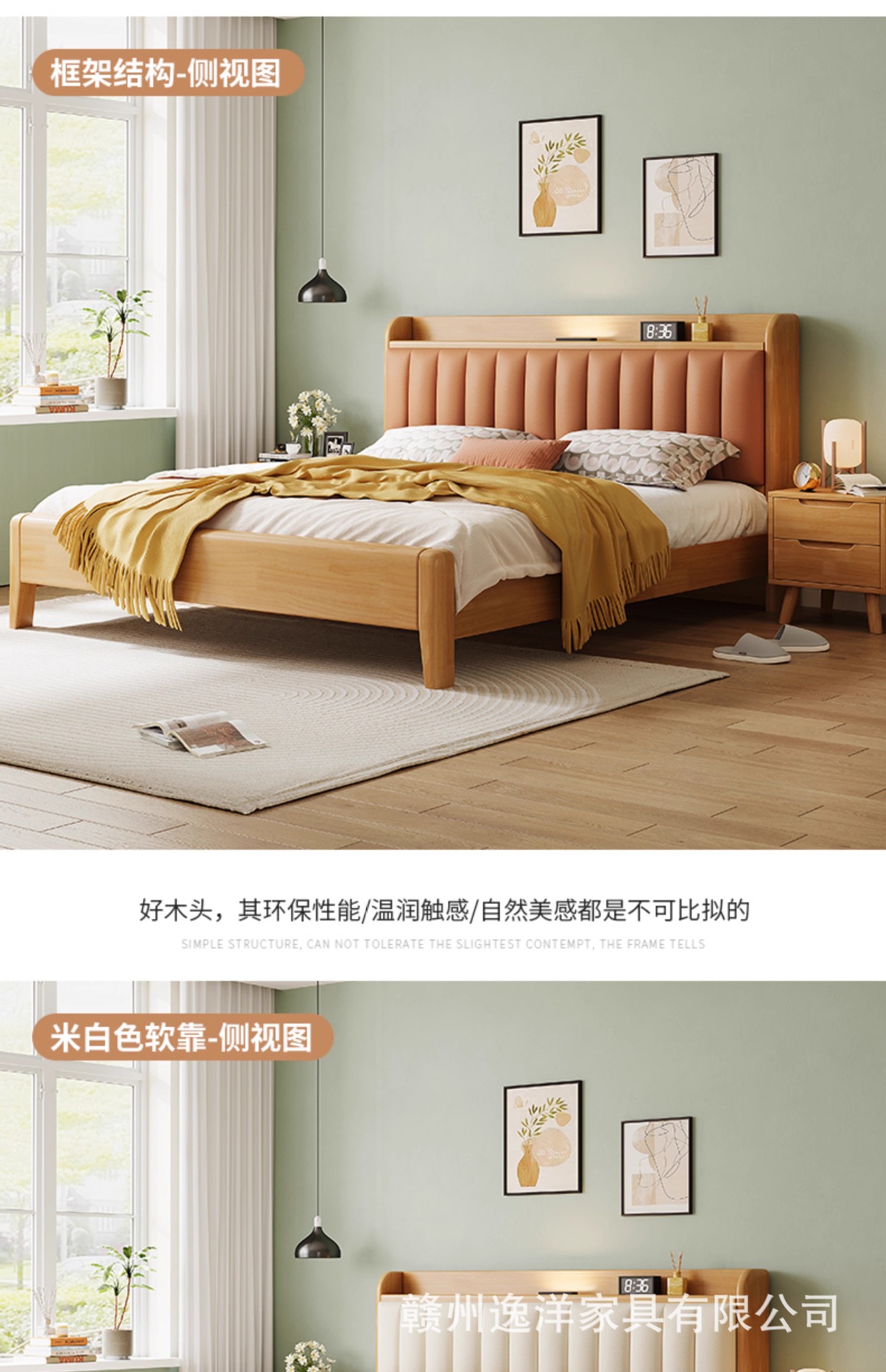 북유럽 가정용 고무 나무 1.8m 더블 침대 현대 미니멀리스트 1.2m 싱글 수납 일체형 침대 마스터 침실 가구스토어 가기