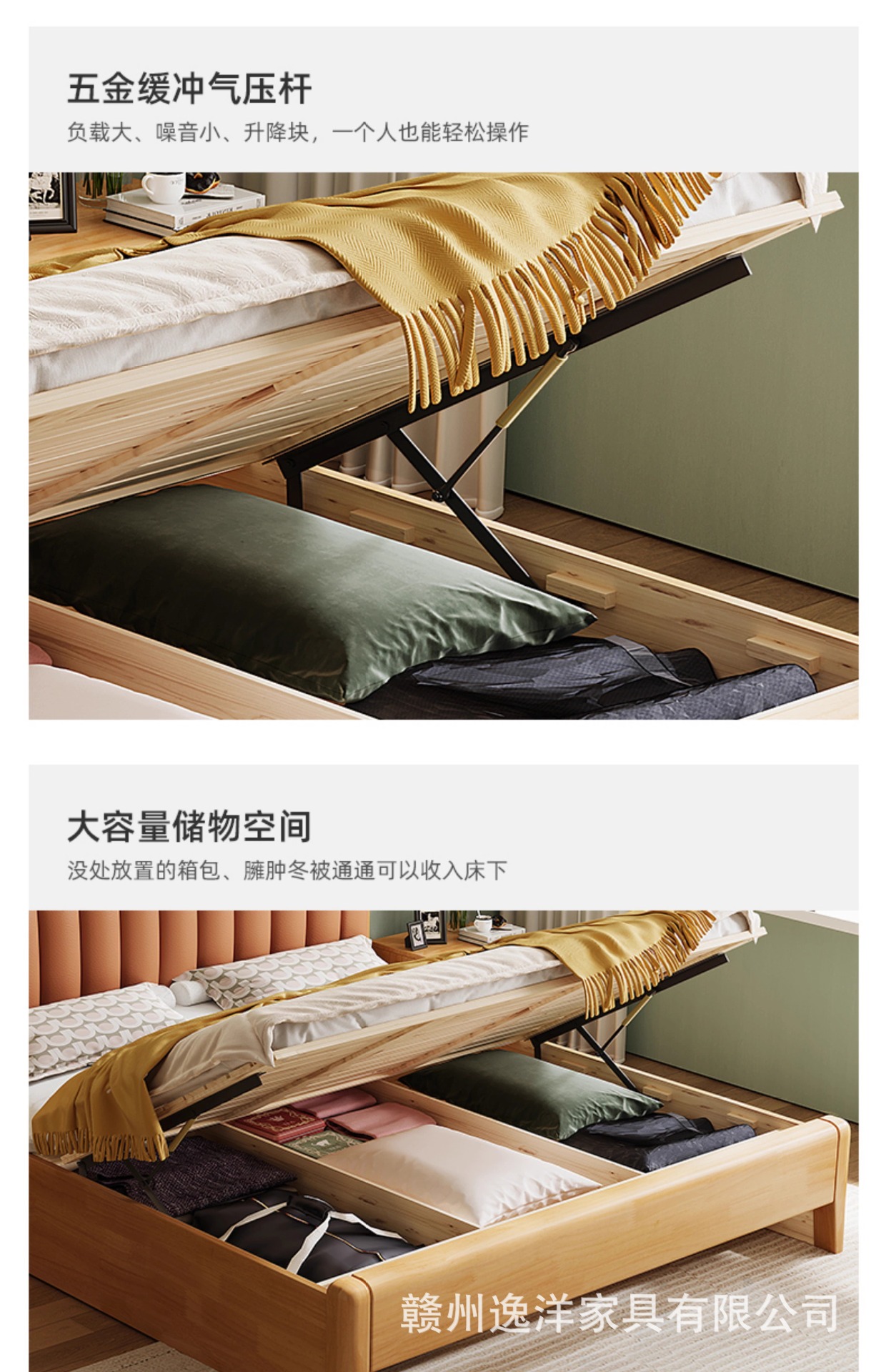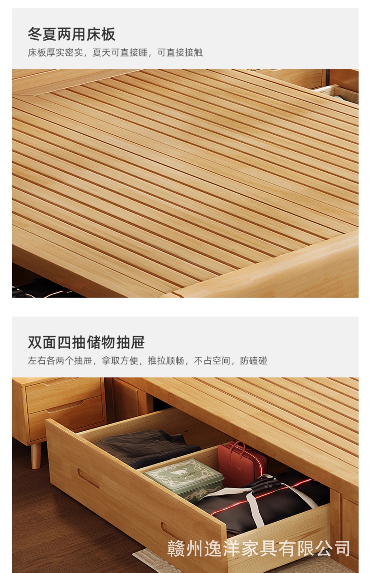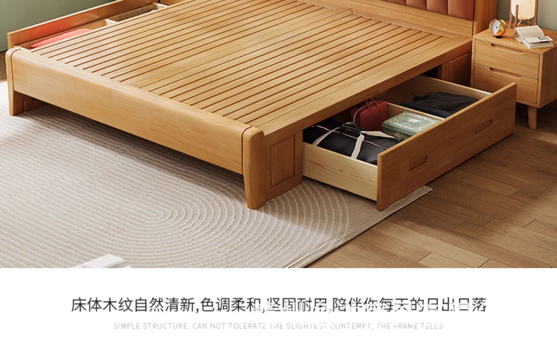 북유럽 가정용 고무 나무 1.8m 더블 침대 현대 미니멀리스트 1.2m 싱글 수납 일체형 침대 마스터 침실 가구