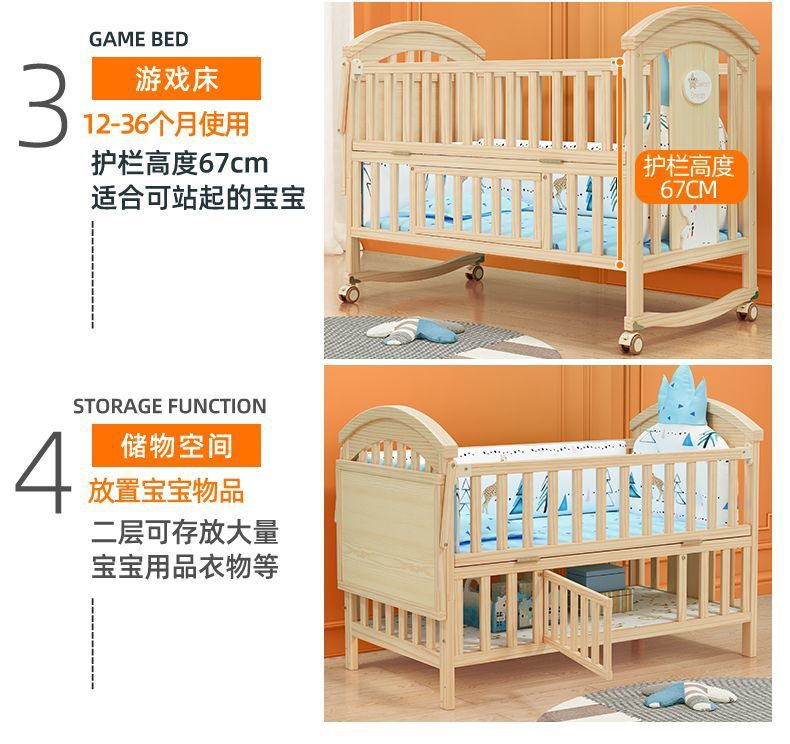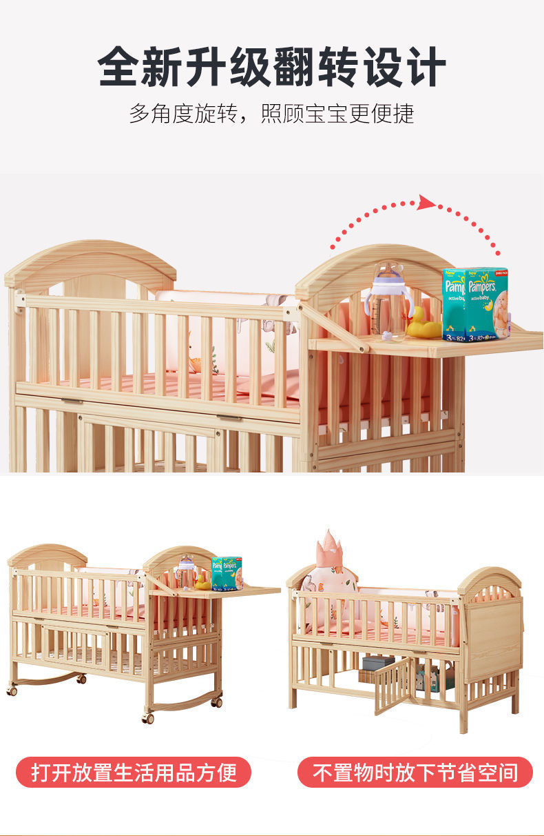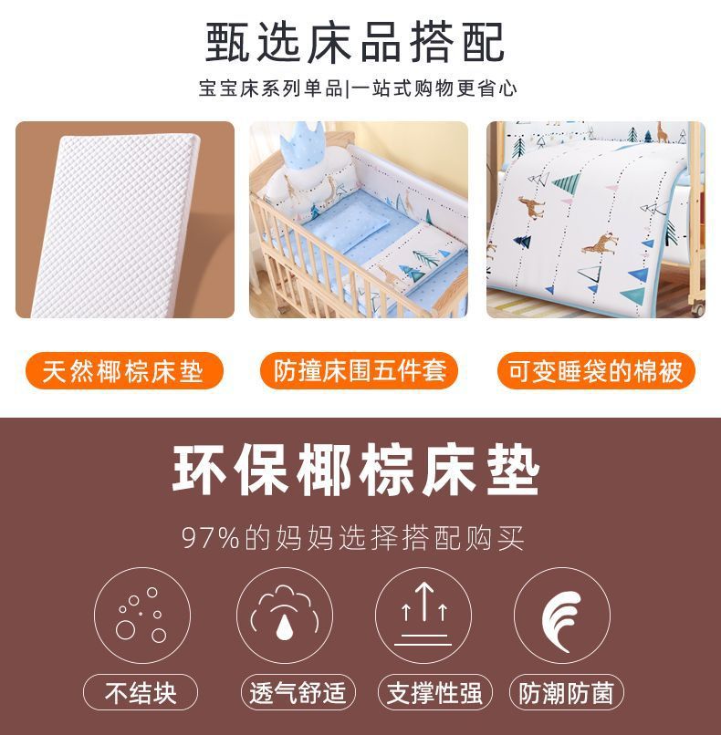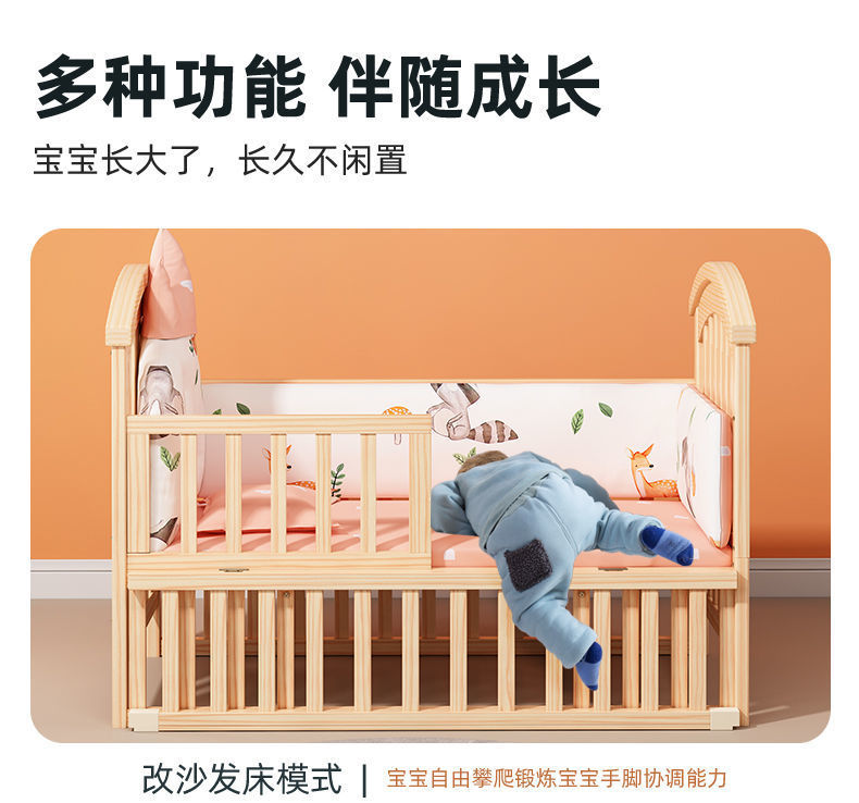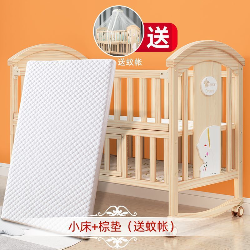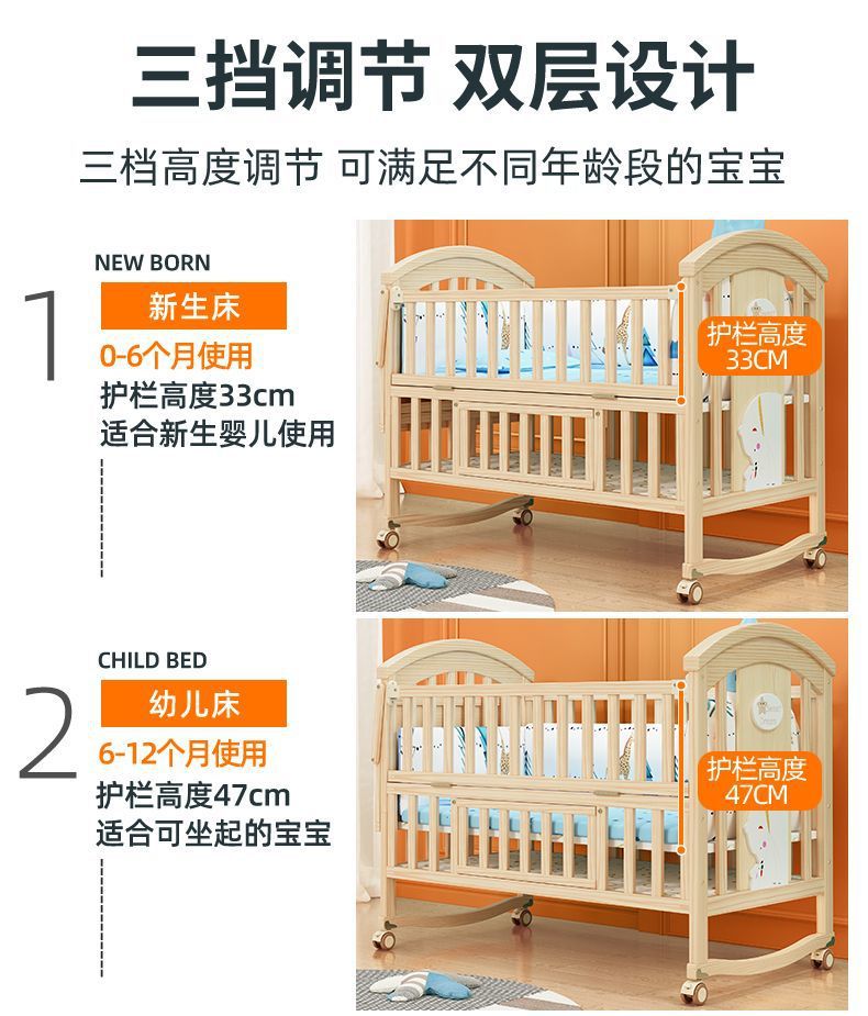 2025 유아용 침대 단단한 나무 다기능 아기 bb 침대 요람 유아용 침대 이동식 어린이 접합 대형∑스토어 가기