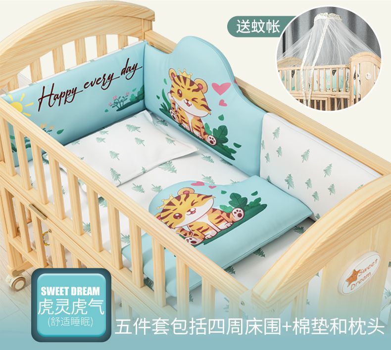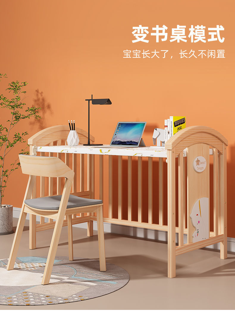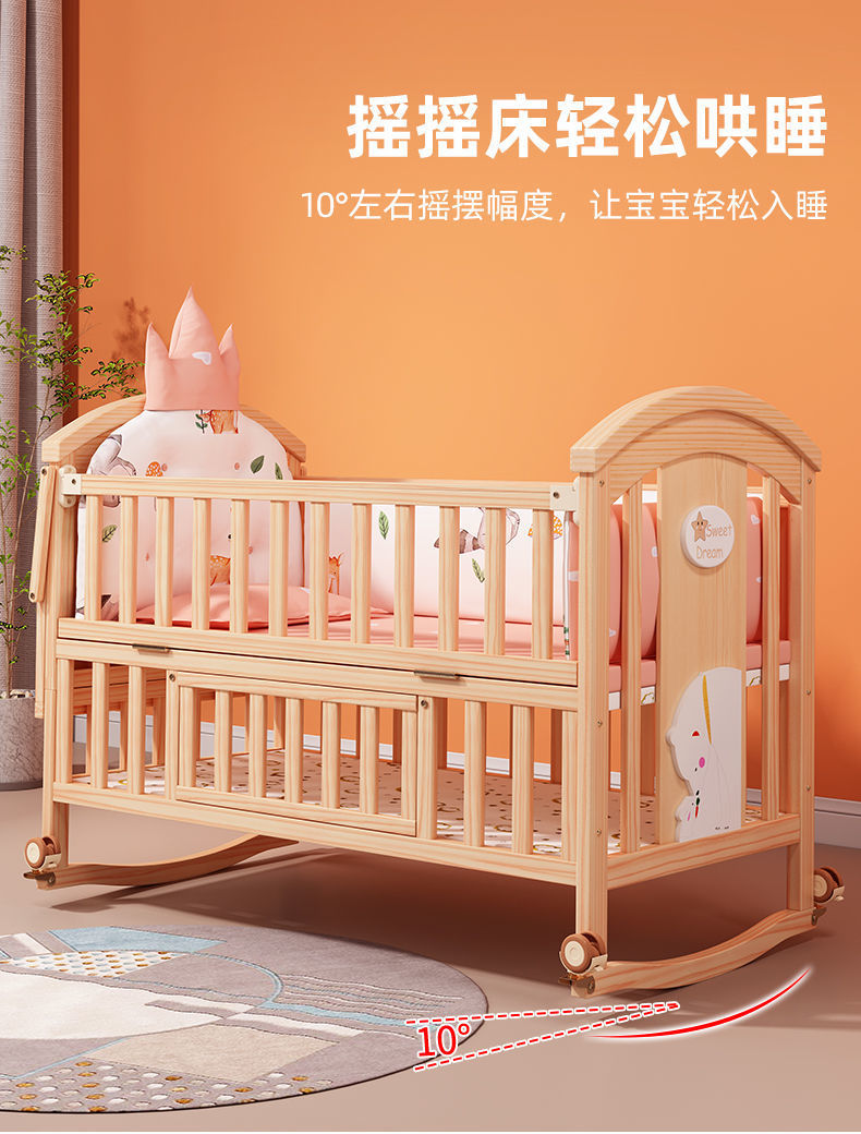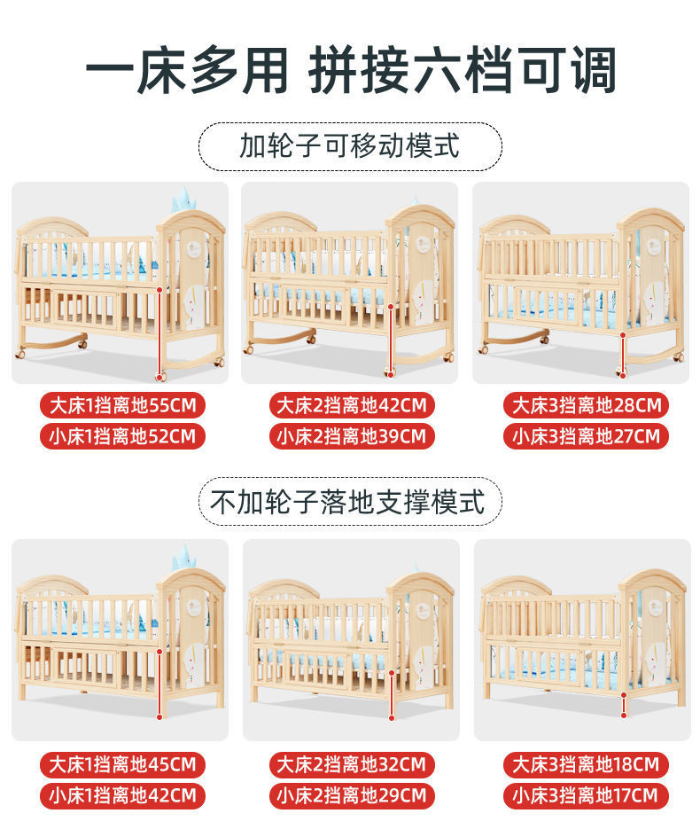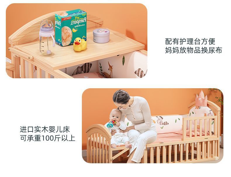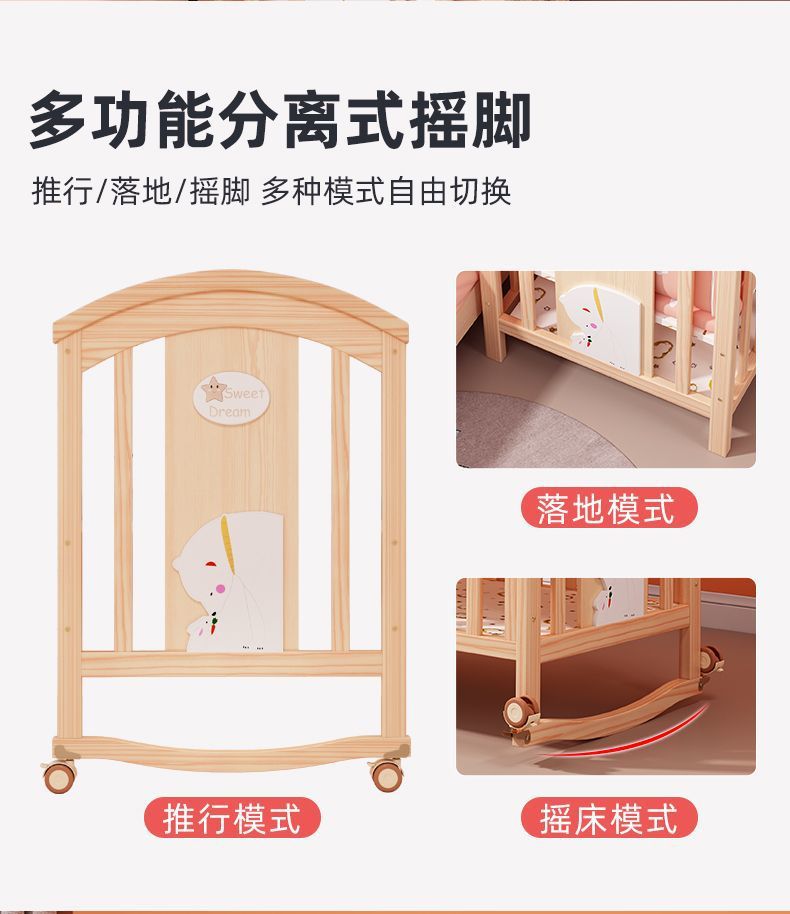 2025 유아용 침대 단단한 나무 다기능 아기 bb 침대 요람 유아용 침대 이동식 어린이 접합 대형∑스토어 가기