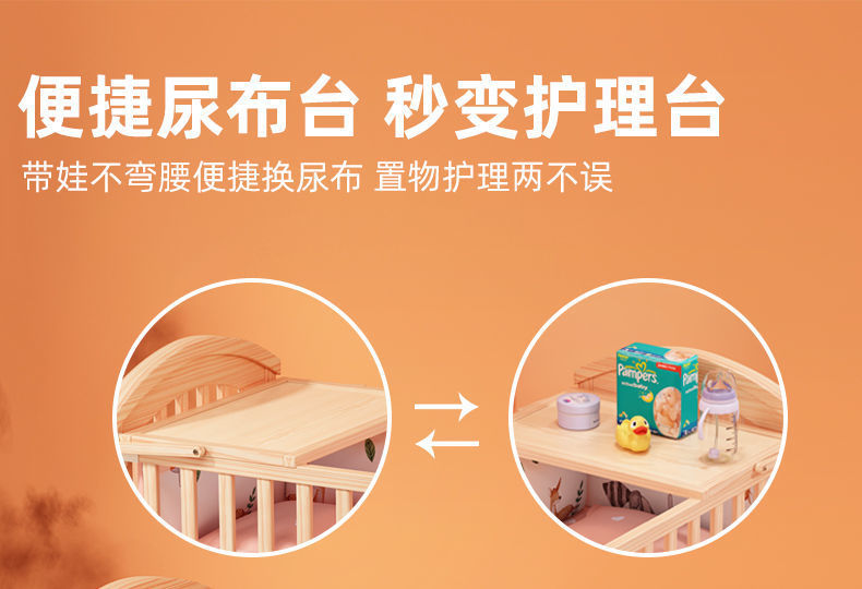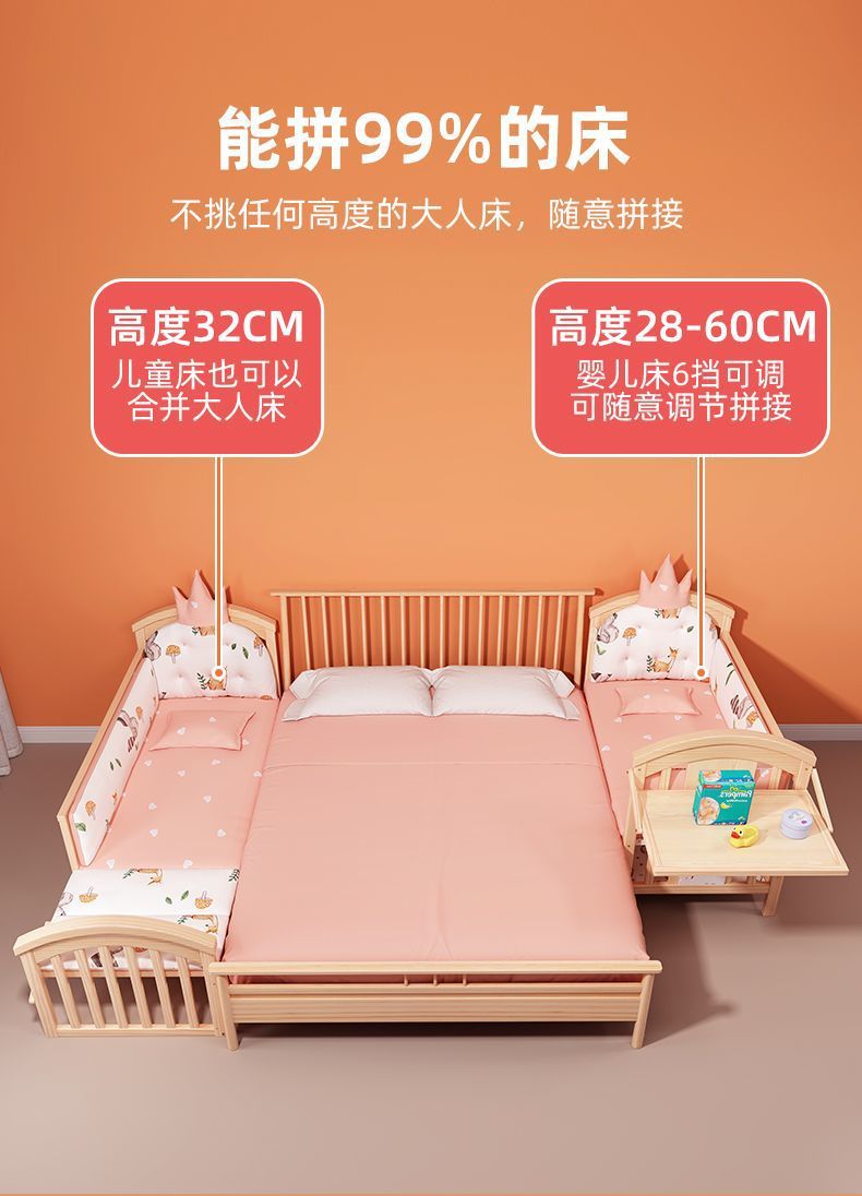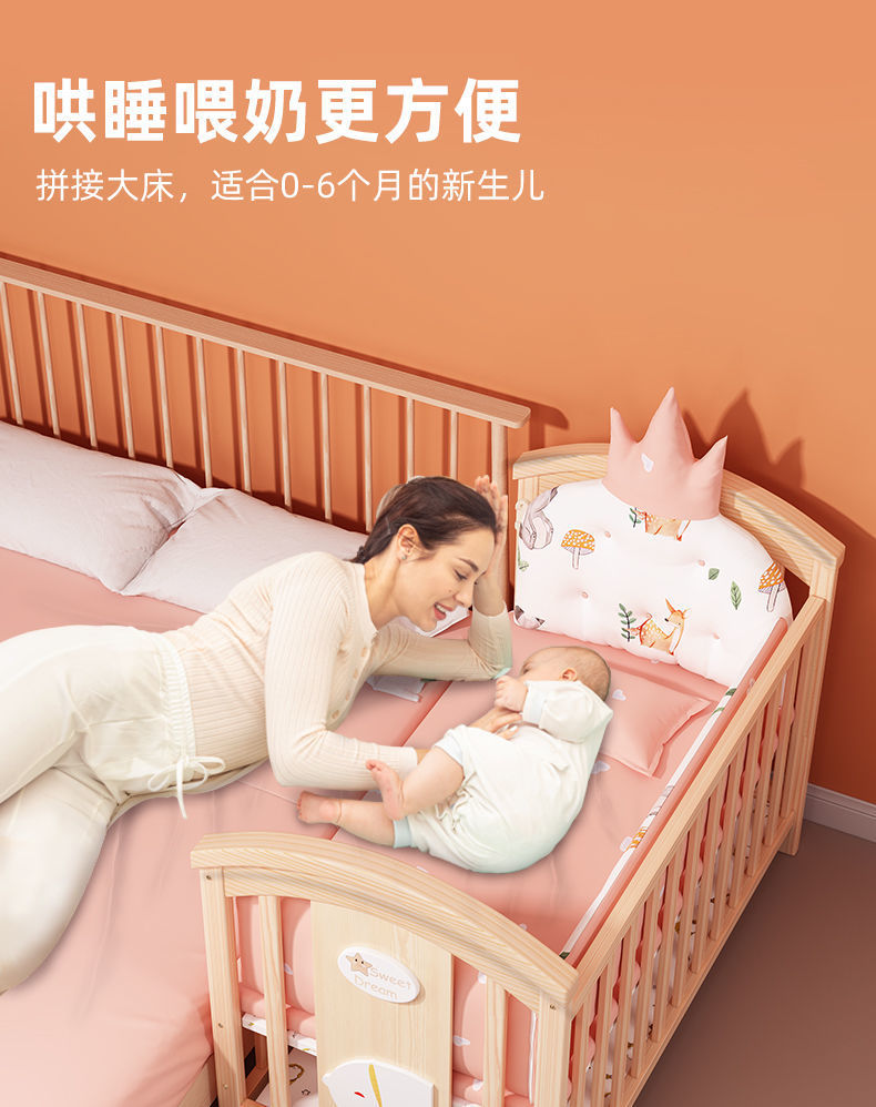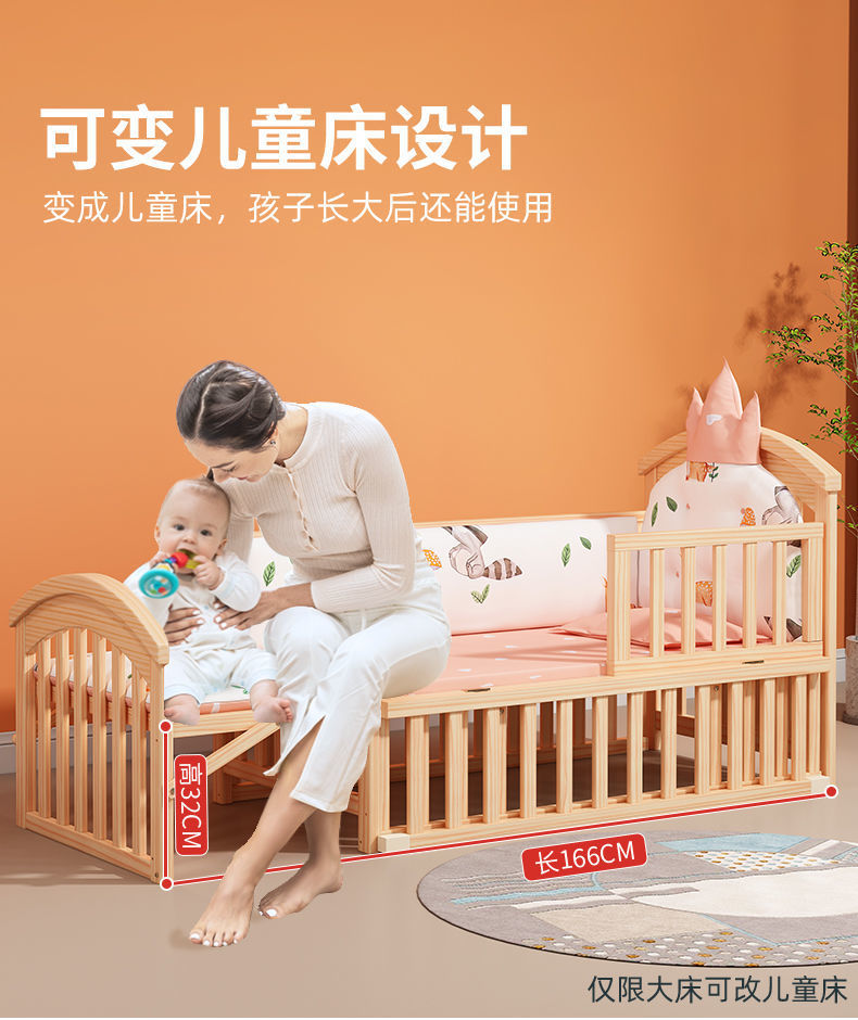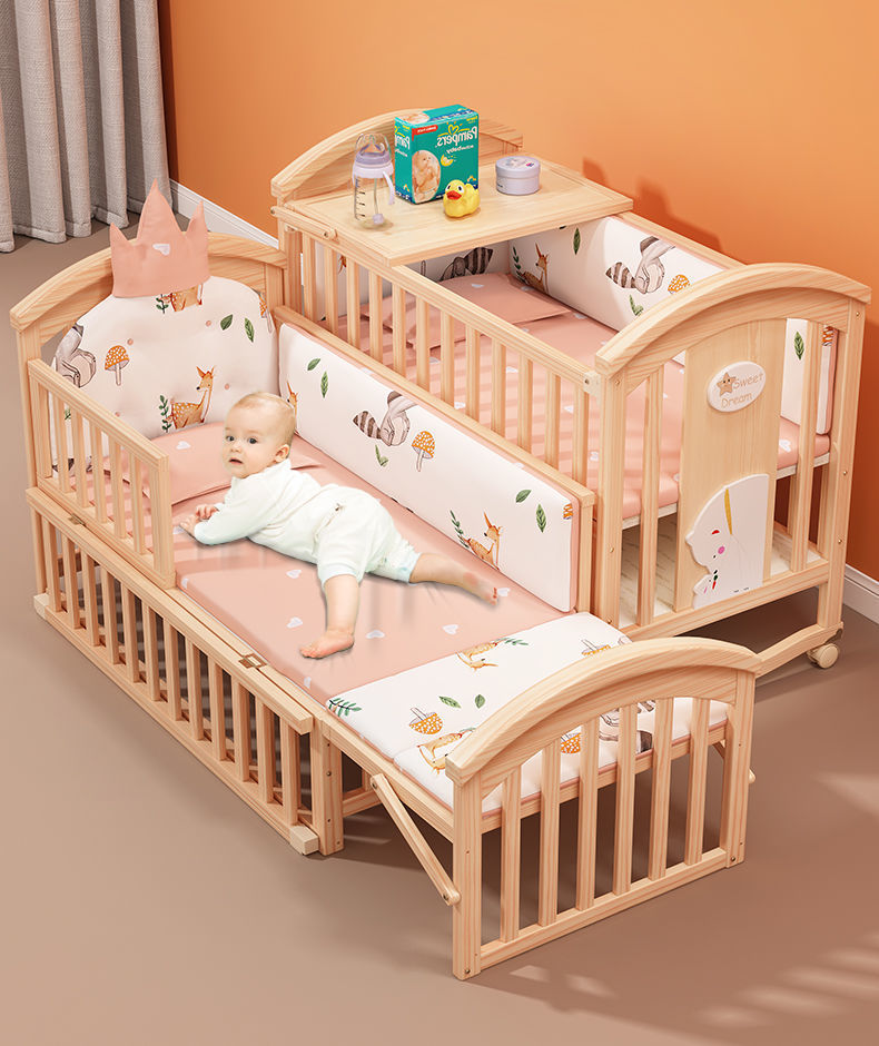 2025 유아용 침대 단단한 나무 다기능 아기 bb 침대 요람 유아용 침대 이동식 어린이 접합 대형∑
