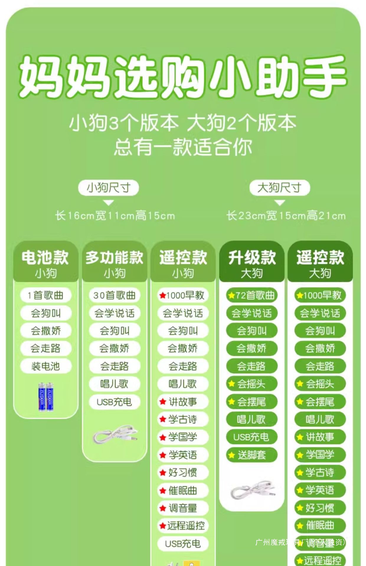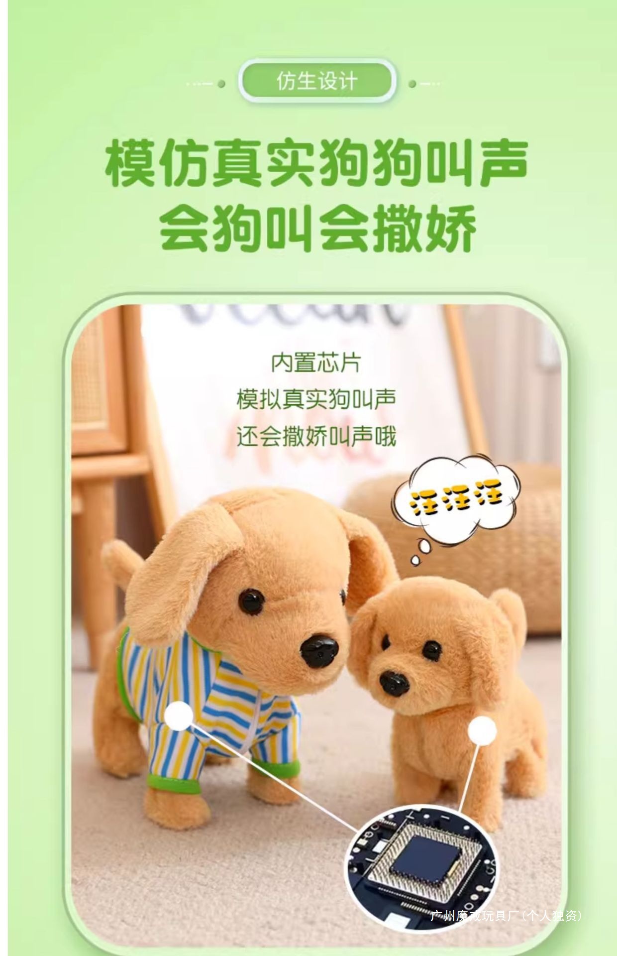 • [업그레이드된 골든 리트리버 - 녹색과 흰색 모델] 동요 72곡 + 말하기 배우기 + 머리 흔들기 + 꼬리 흔들기 + 개 짖는 소리 + 요염한 행동 + 걷기